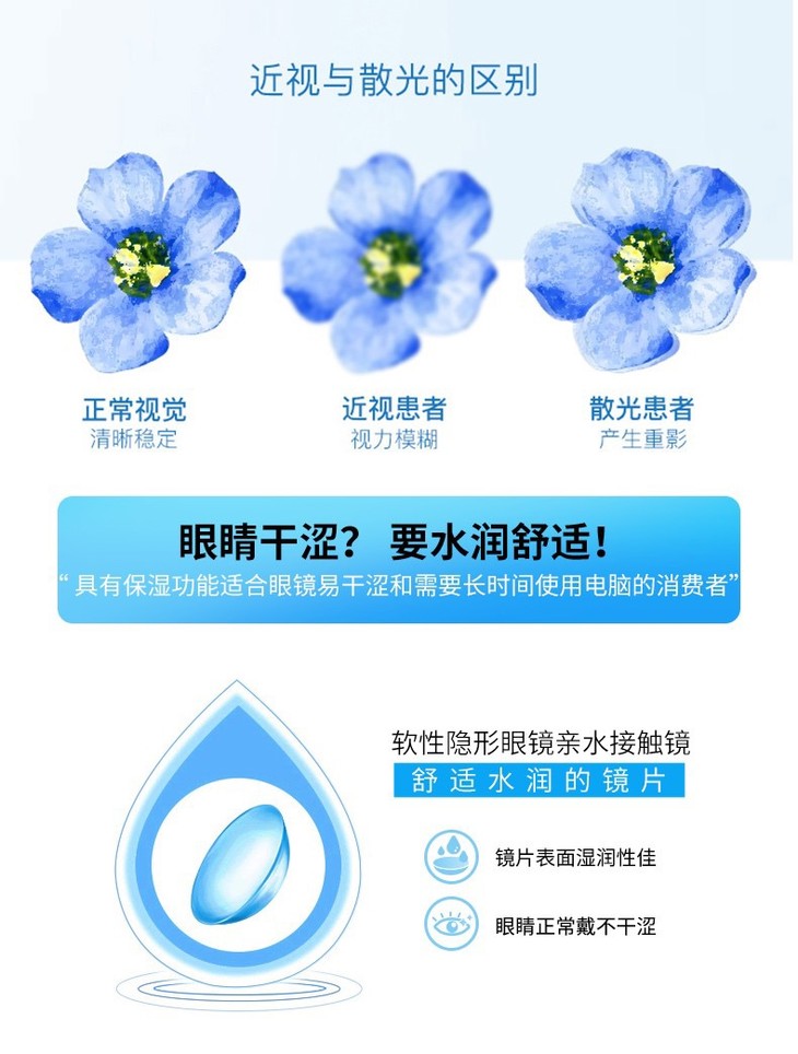 酷视年抛散光水润保湿型1片装 可定最高光度远视+20.00