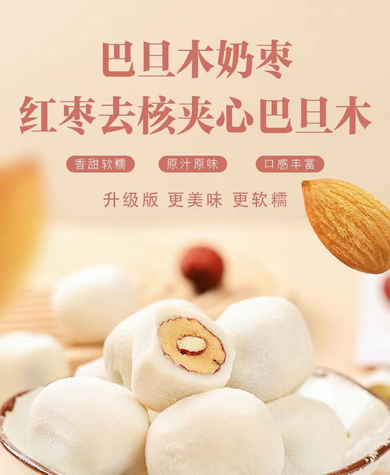 【微甜不腻 软糯夹心!网红奶酪枣】口感惊艳,满口奶香浓郁, 新货巴旦木夹心奶枣独立装奶香杏仁夹心奶枣