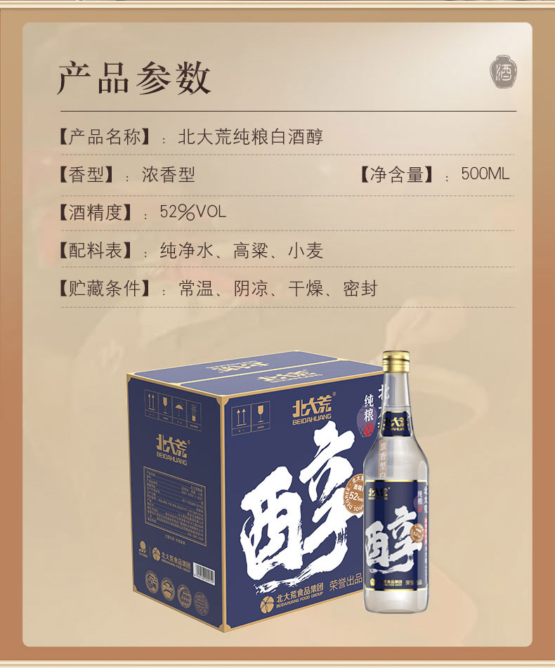 【中国农垦】北大荒白酒醇52度500ml*6瓶