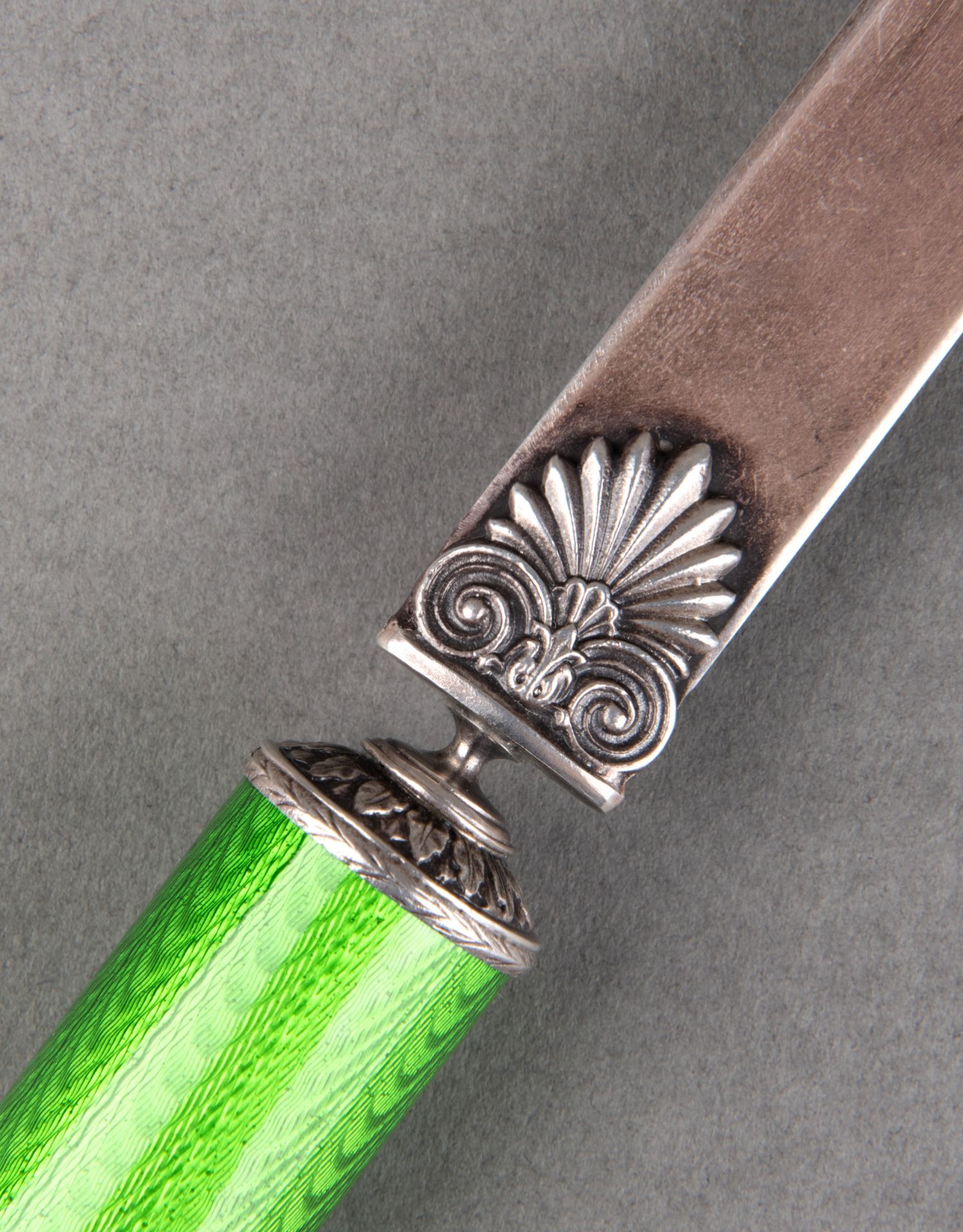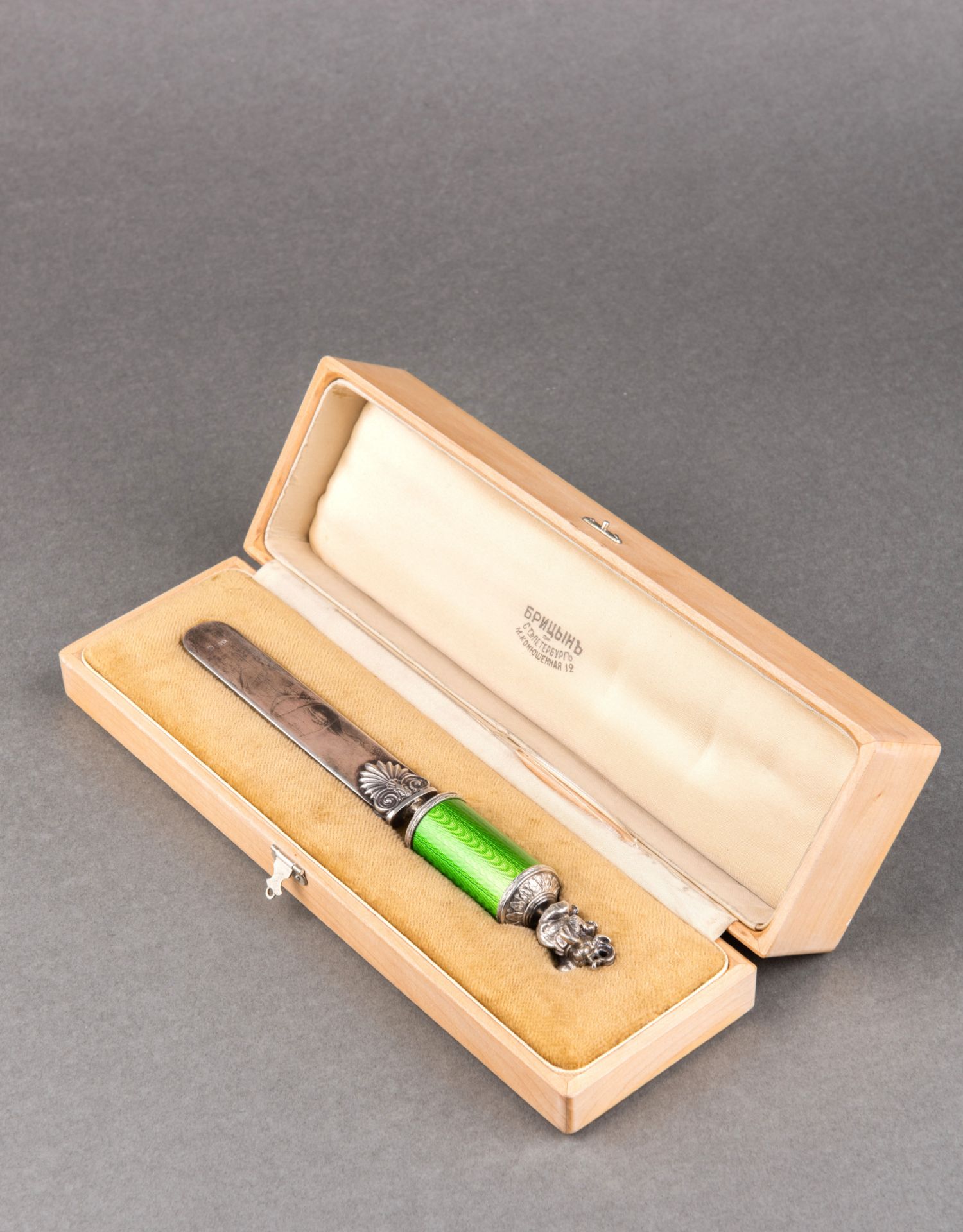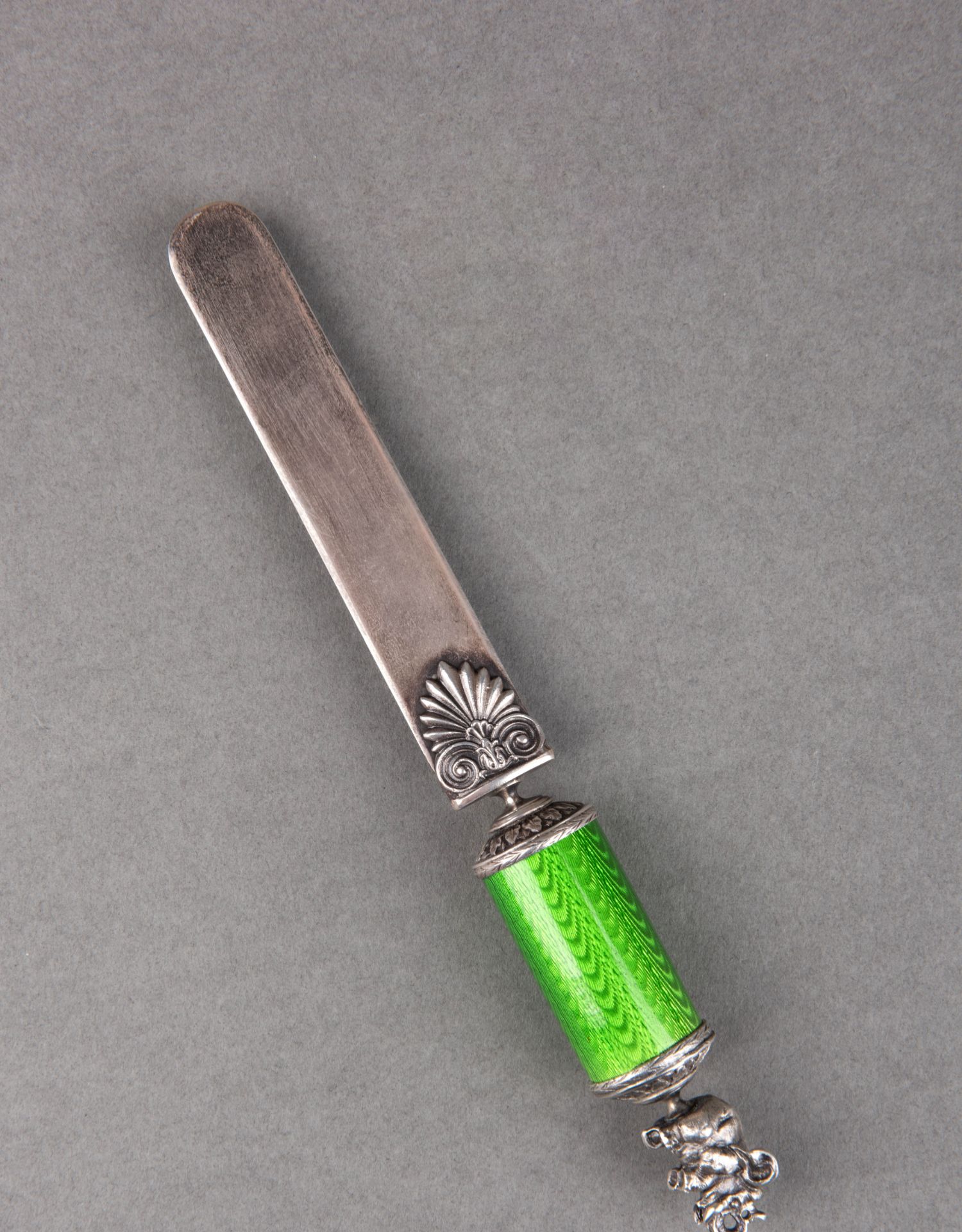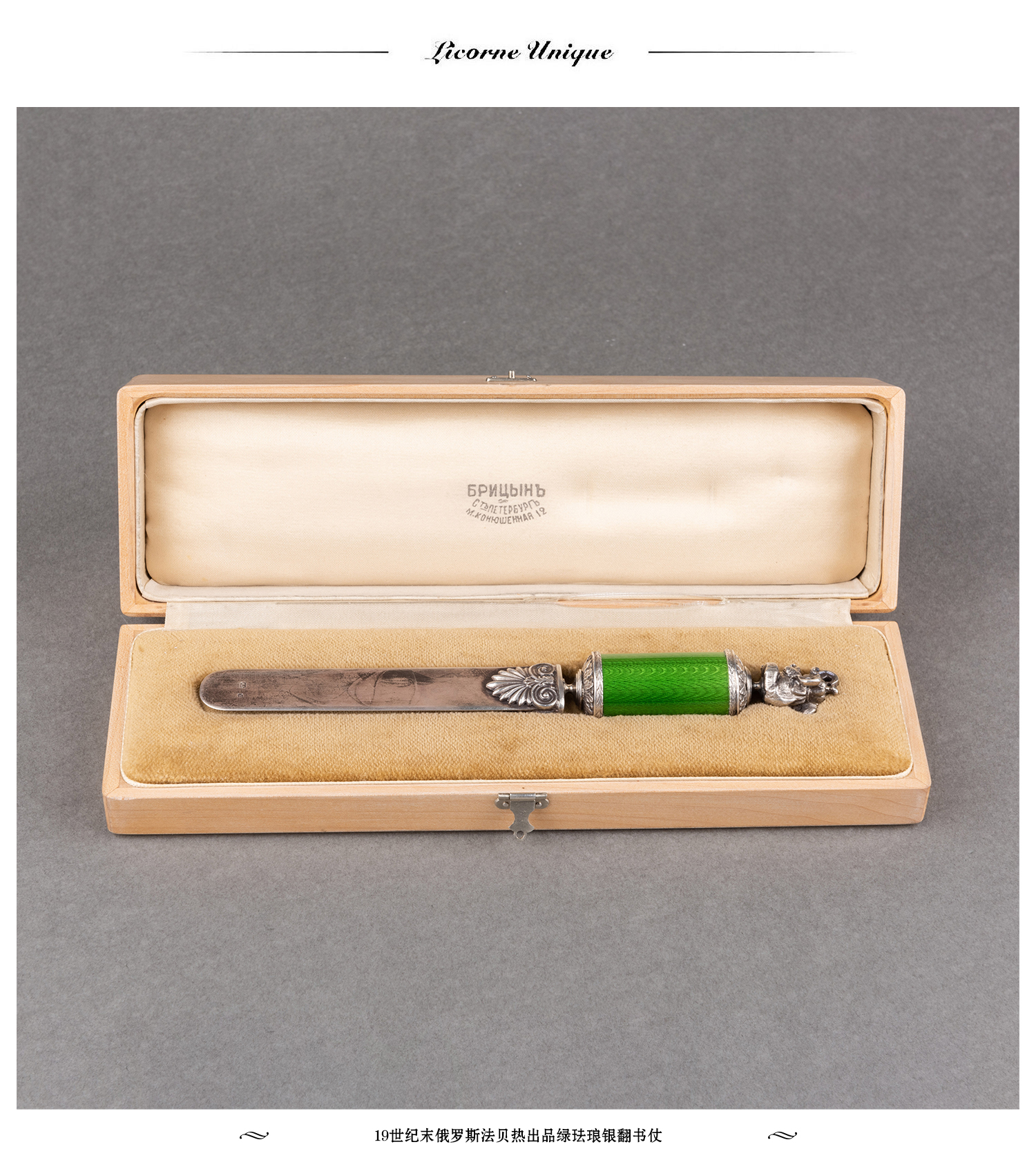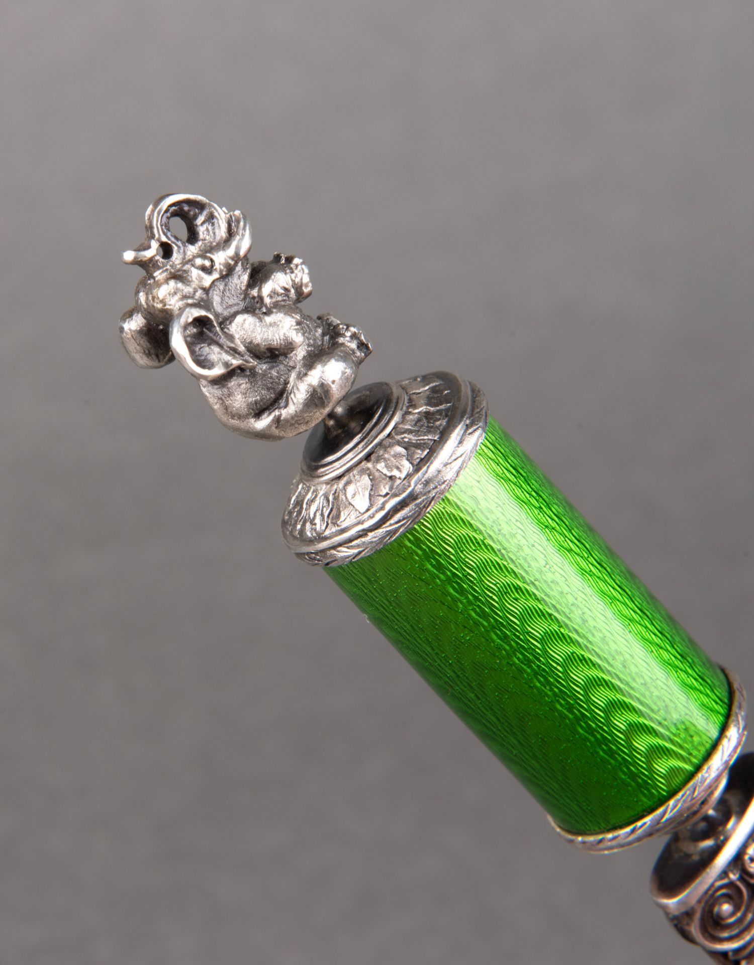 独角鹿西洋古董19世纪末俄罗斯法贝热工坊大象绿珐琅银翻书杖