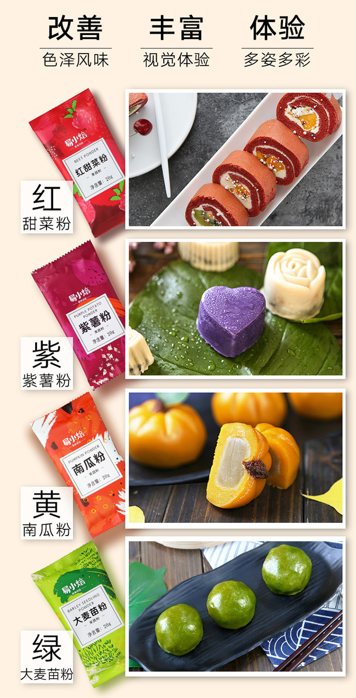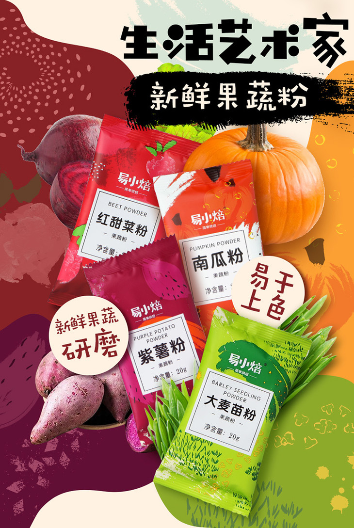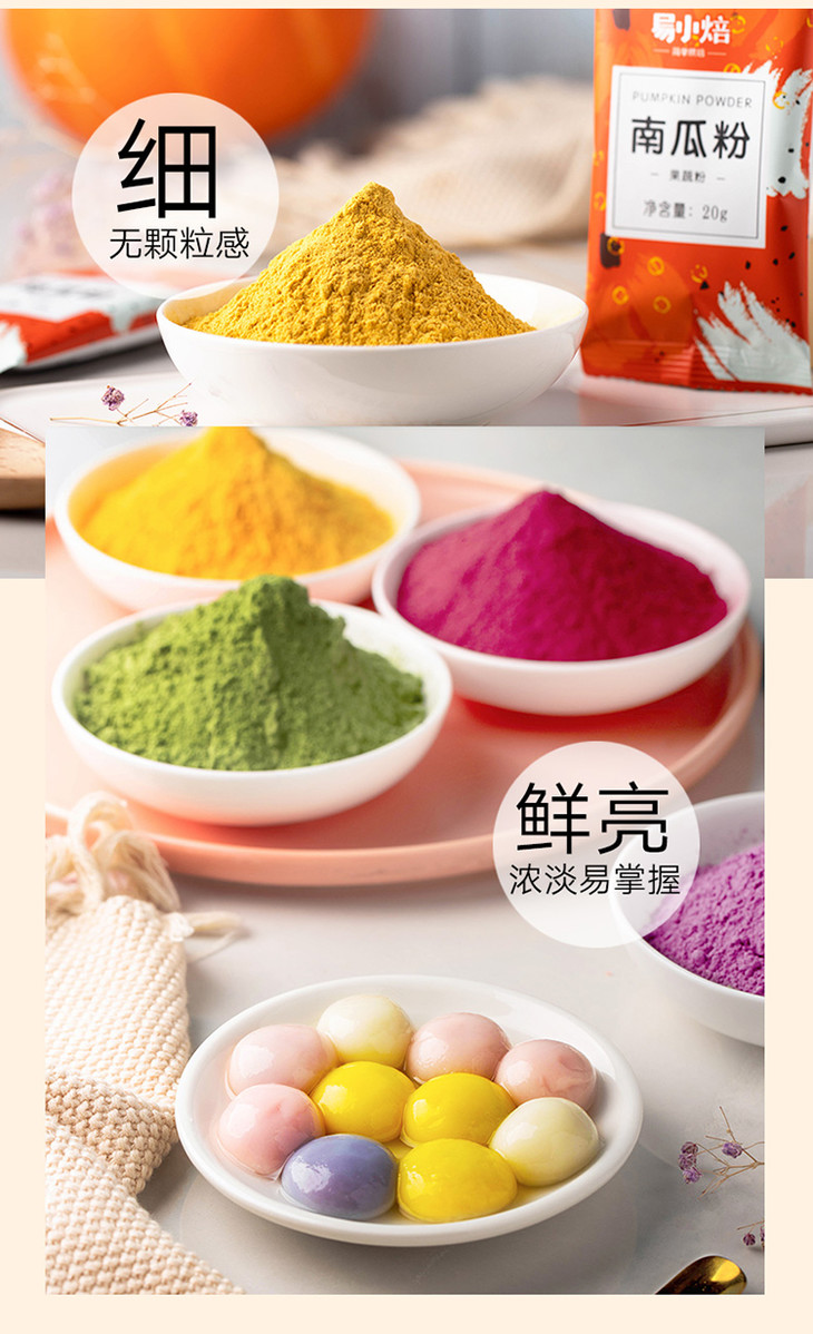 易小焙天然果蔬粉纯紫薯南瓜粉可食用色素色面粉冰皮月饼烘焙原料