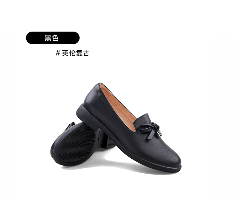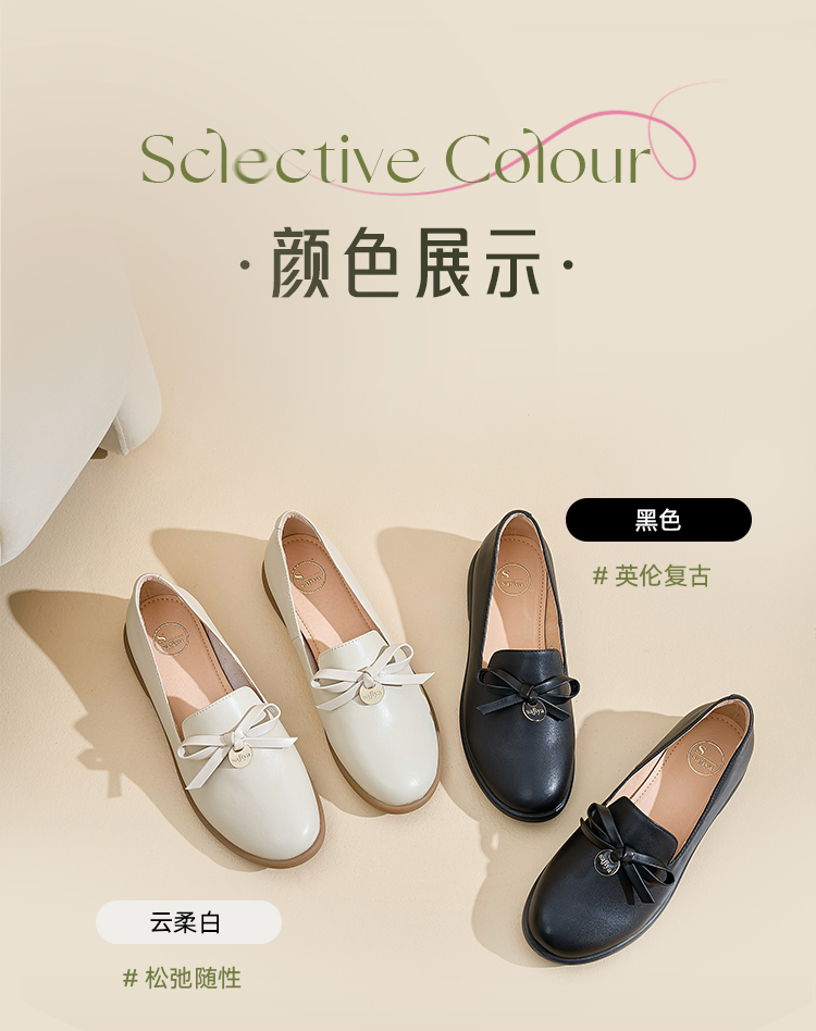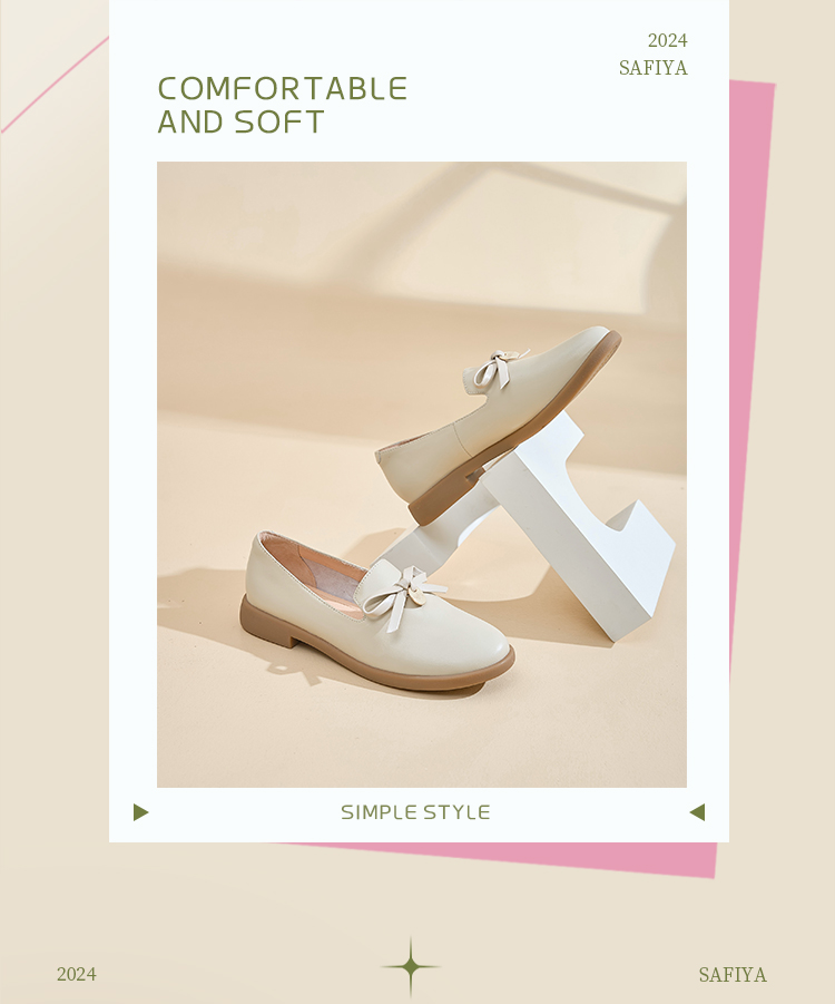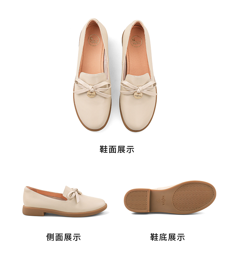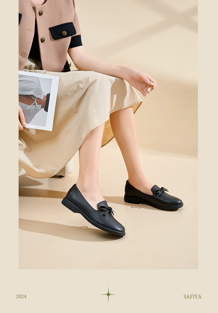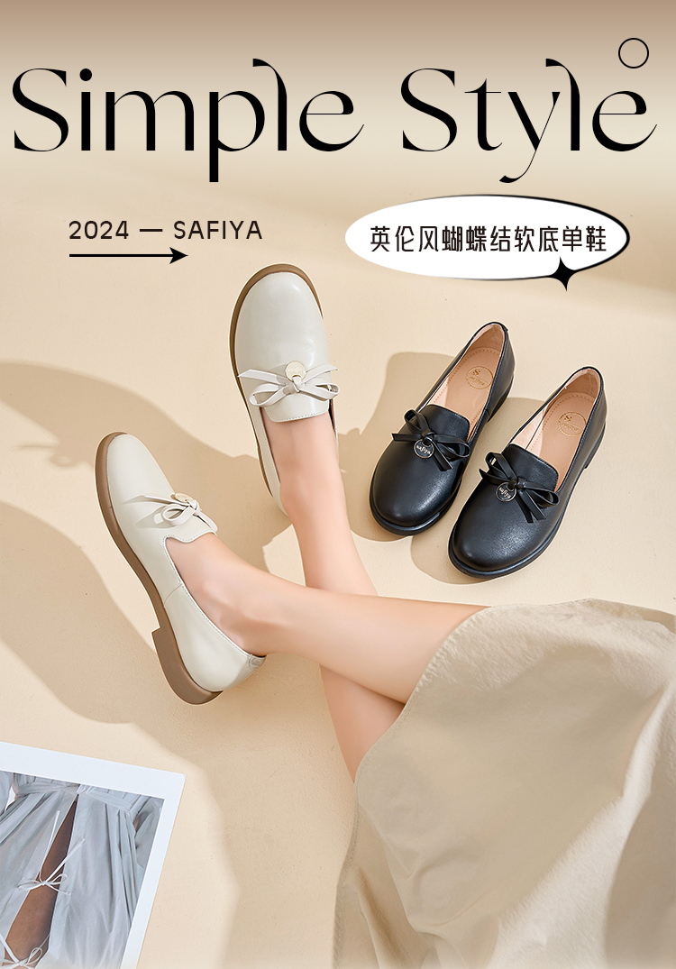 Safiya/索菲娅2024新品 英伦风低跟百搭圆头蝴蝶结软底复古单鞋 SF43111403