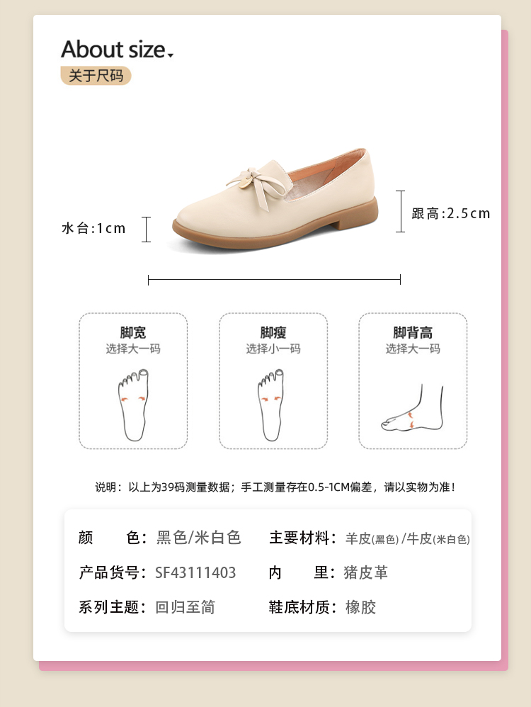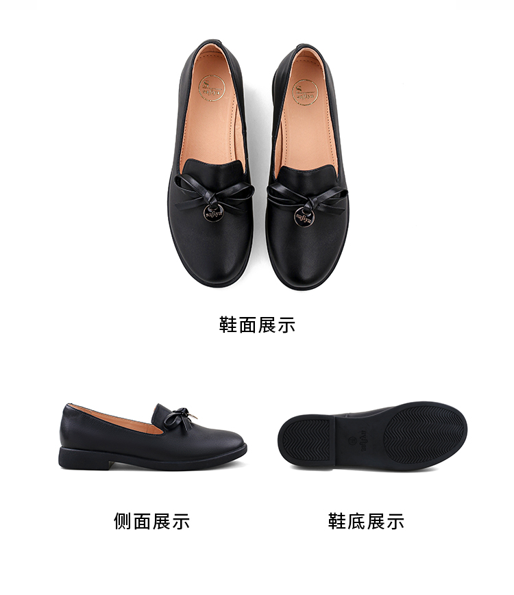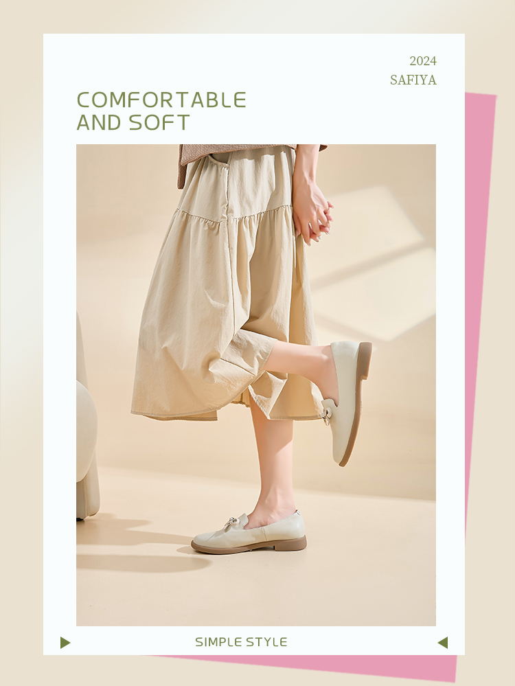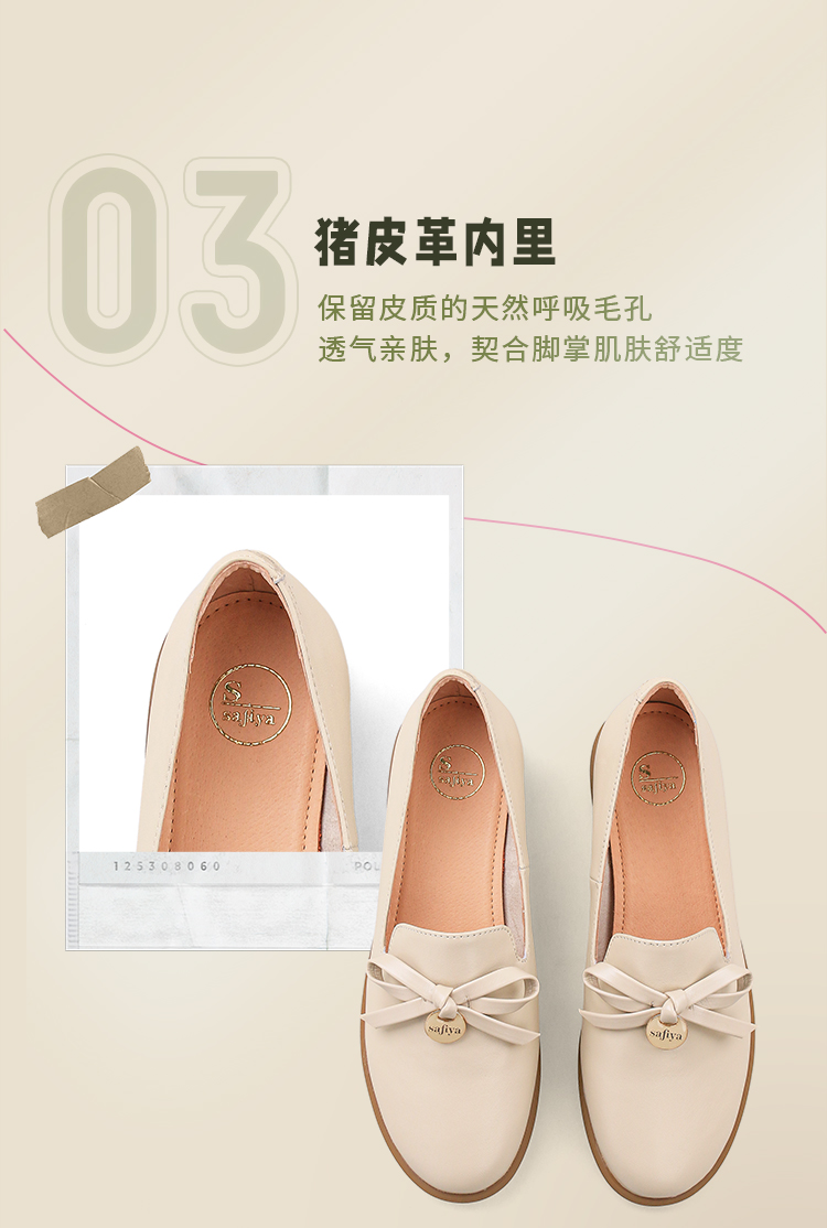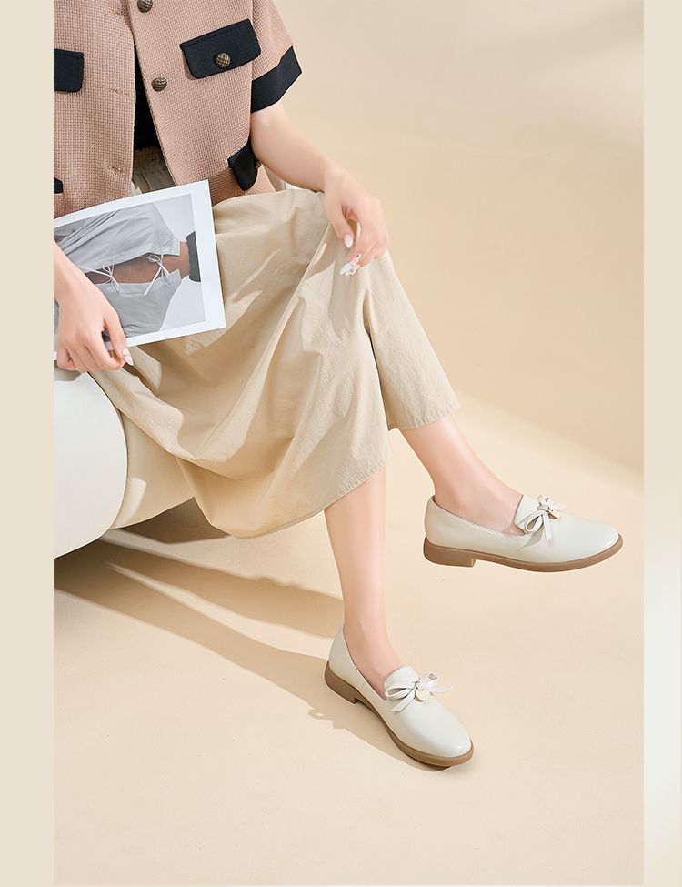 Safiya/索菲娅2024新品 英伦风低跟百搭圆头蝴蝶结软底复古单鞋 SF43111403