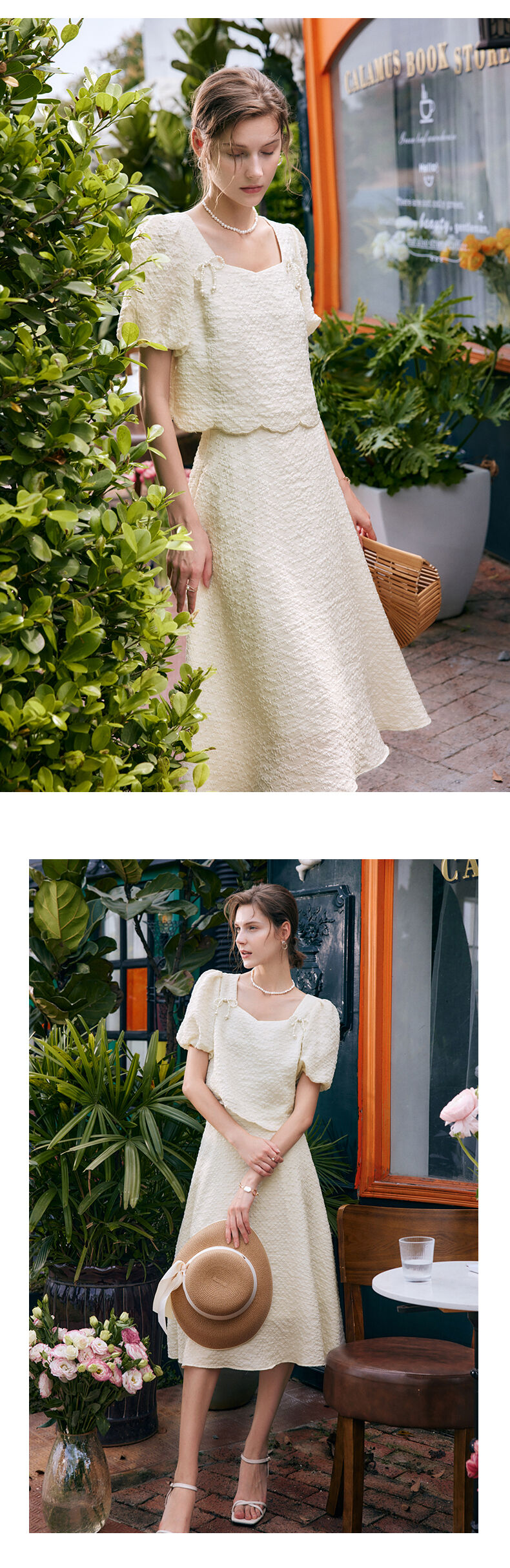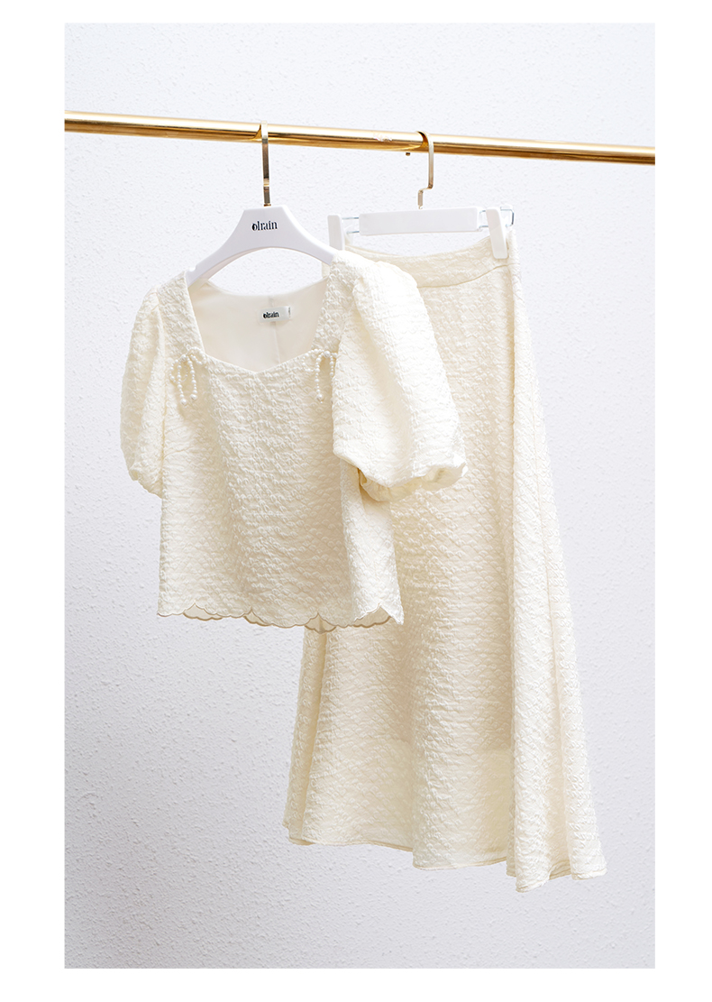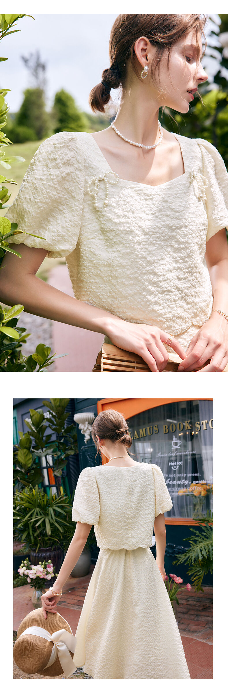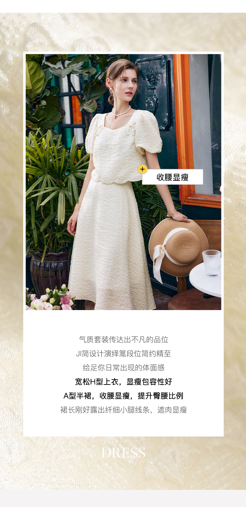 欧芮儿OLrain法式泡泡纱时尚套装女夏季2022年新款裙子两件套