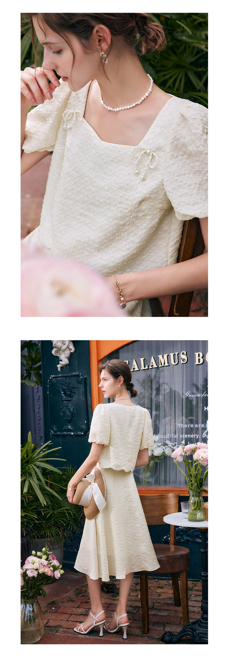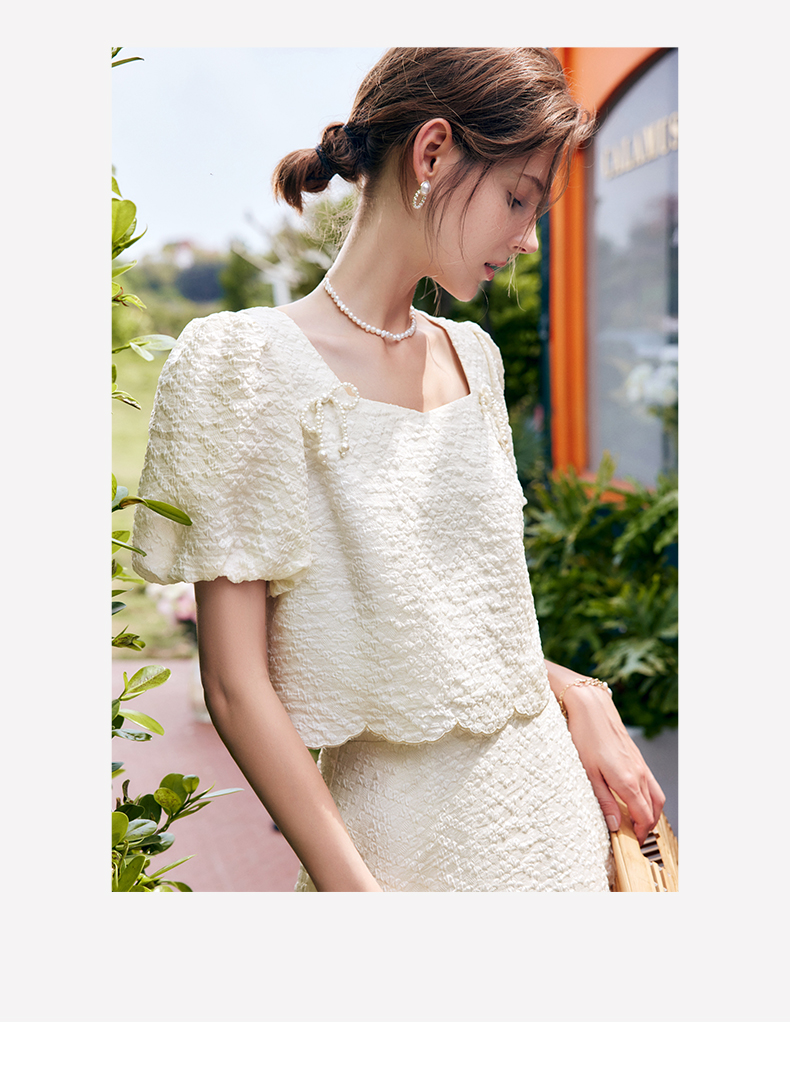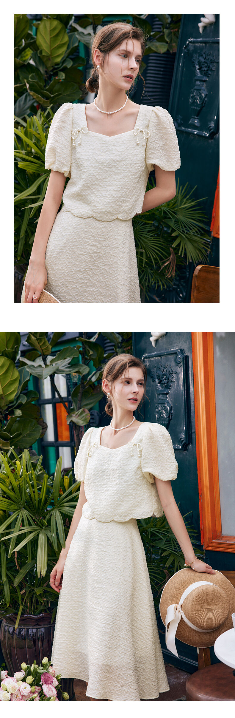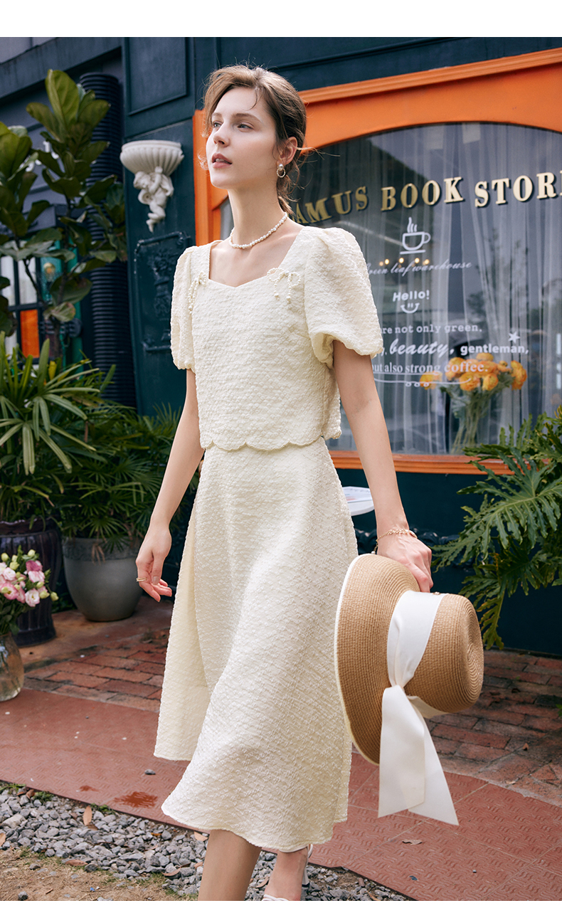 欧芮儿OLrain法式泡泡纱时尚套装女夏季2022年新款裙子两件套