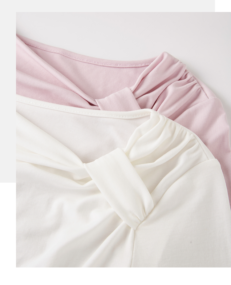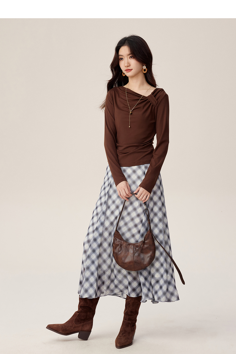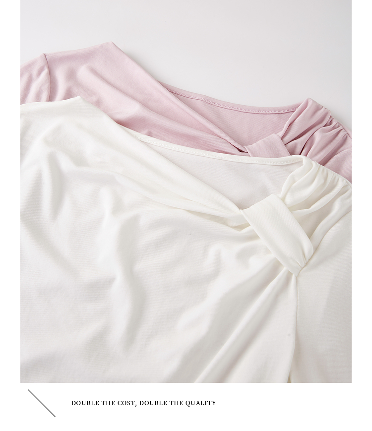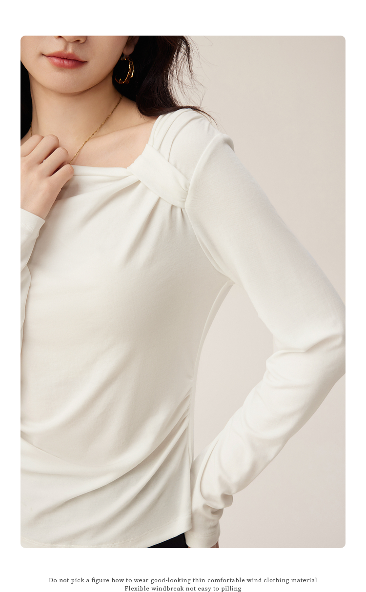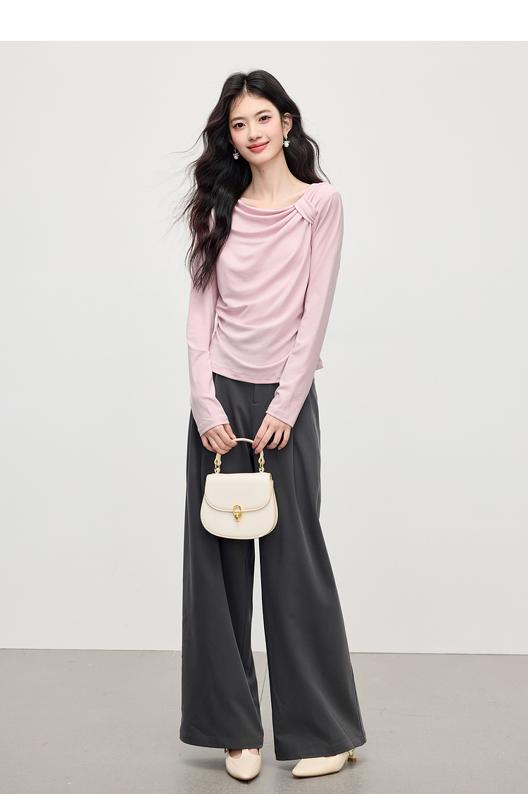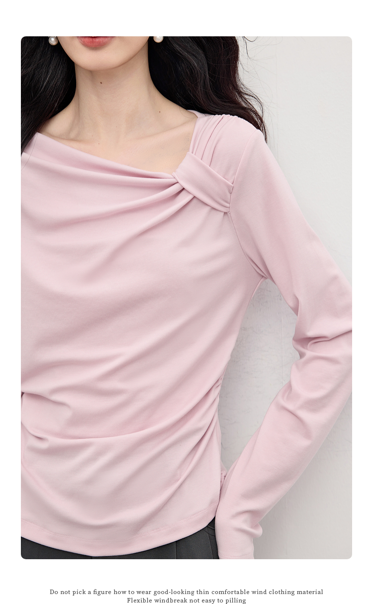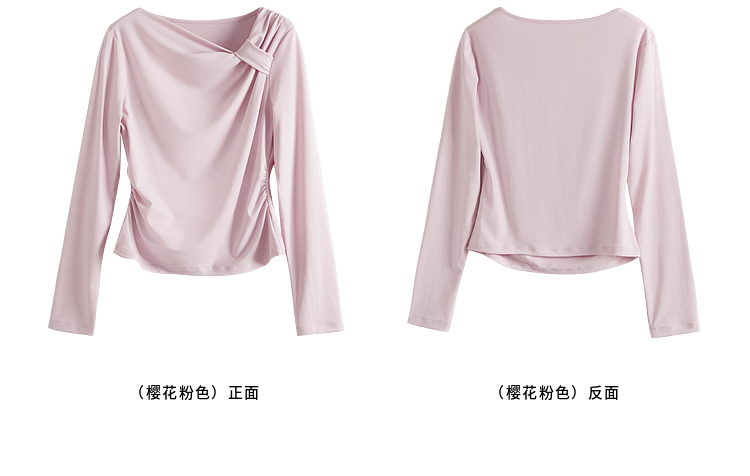 【周四狂欢价】熙世界独特别致斜肩天丝T恤女长袖2025早秋新款气质修身收腰上衣
