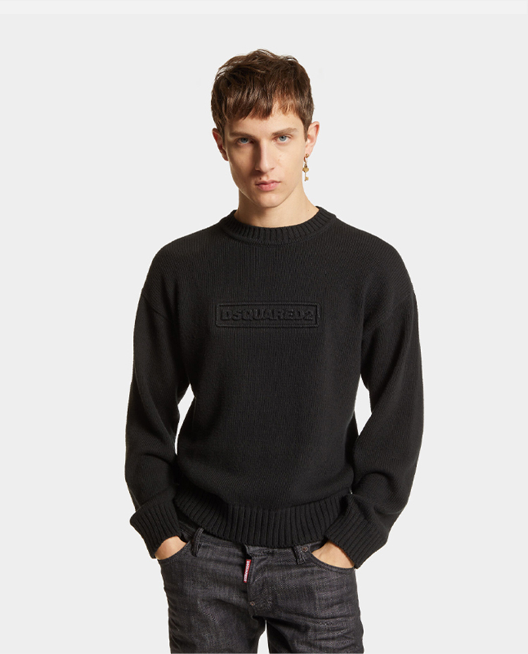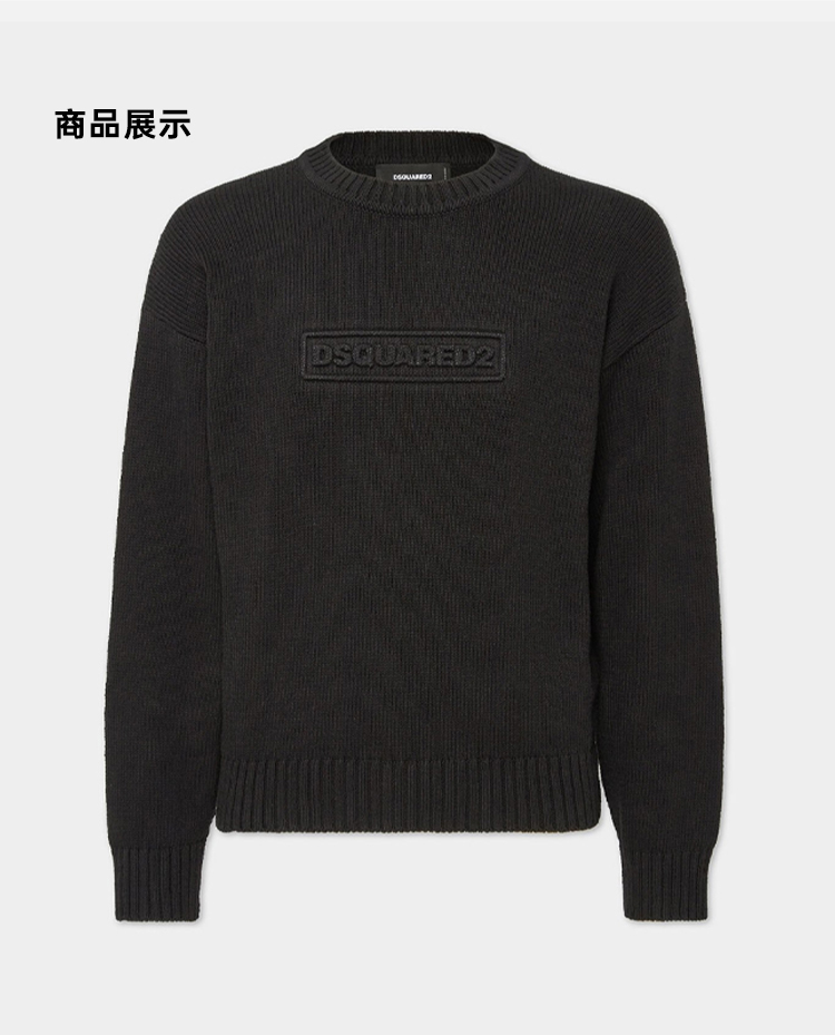 DSQUARED2 男士字母徽标压花棉质长袖针织衫 黑色 S74HA1475 D13029 900