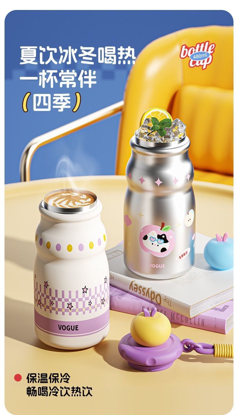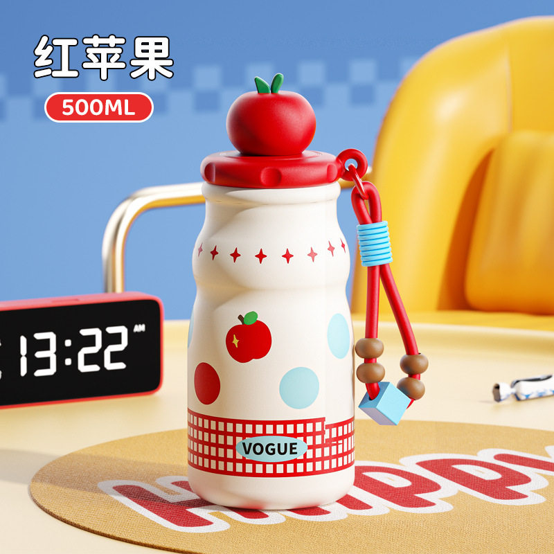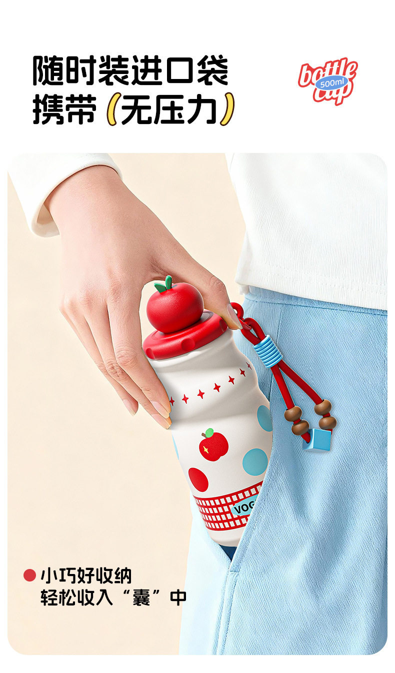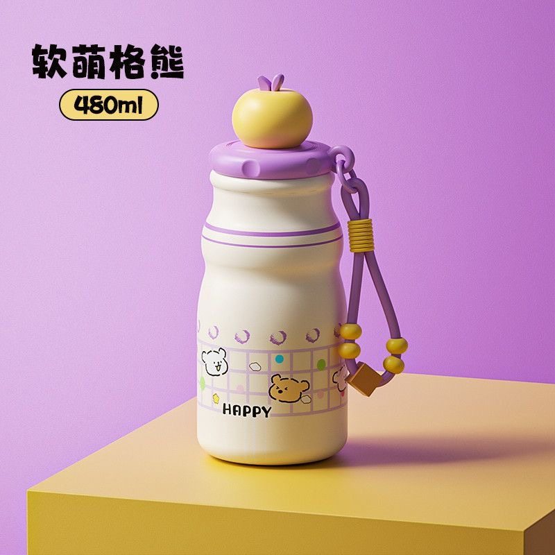 【装进口袋无压力的便携水杯】琥巴熊茶水分离保温杯500ml 新款ins女生高颜值卡通316不锈钢保温杯 学生提绳吸管杯可爱儿童杯