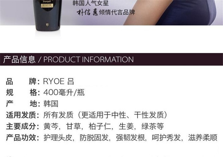 【精品推荐】韩国 Ryoe吕 黑吕洗发水 400gJPY带授权招加盟代理