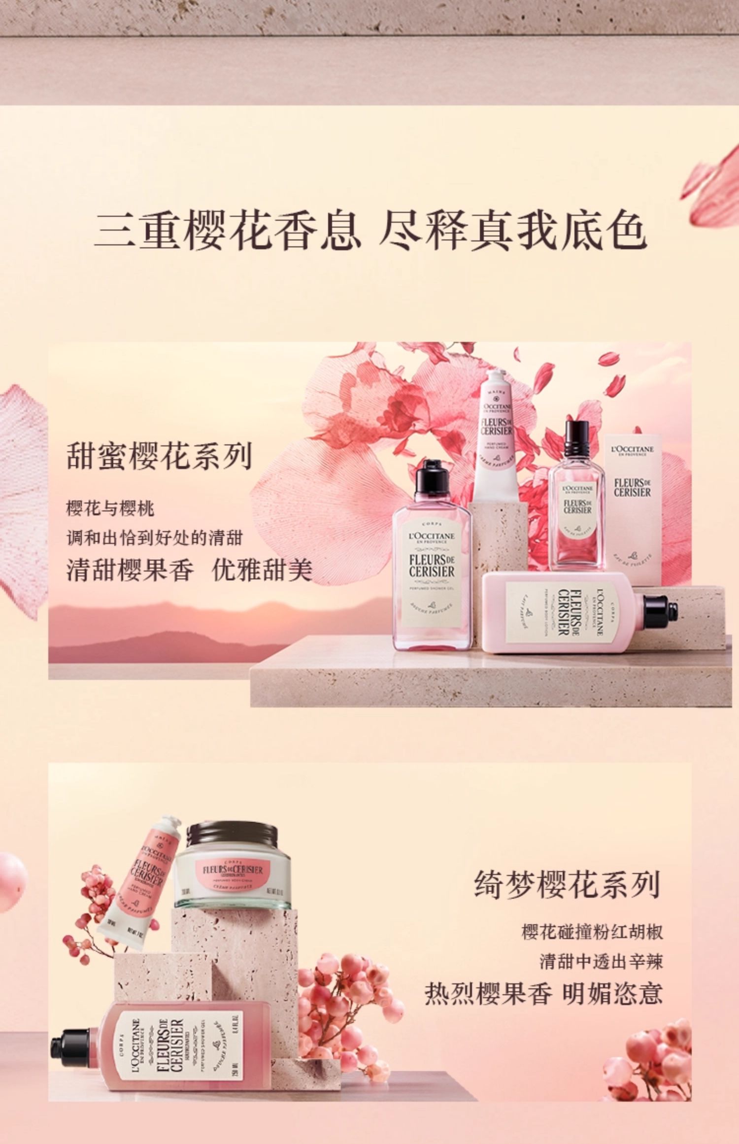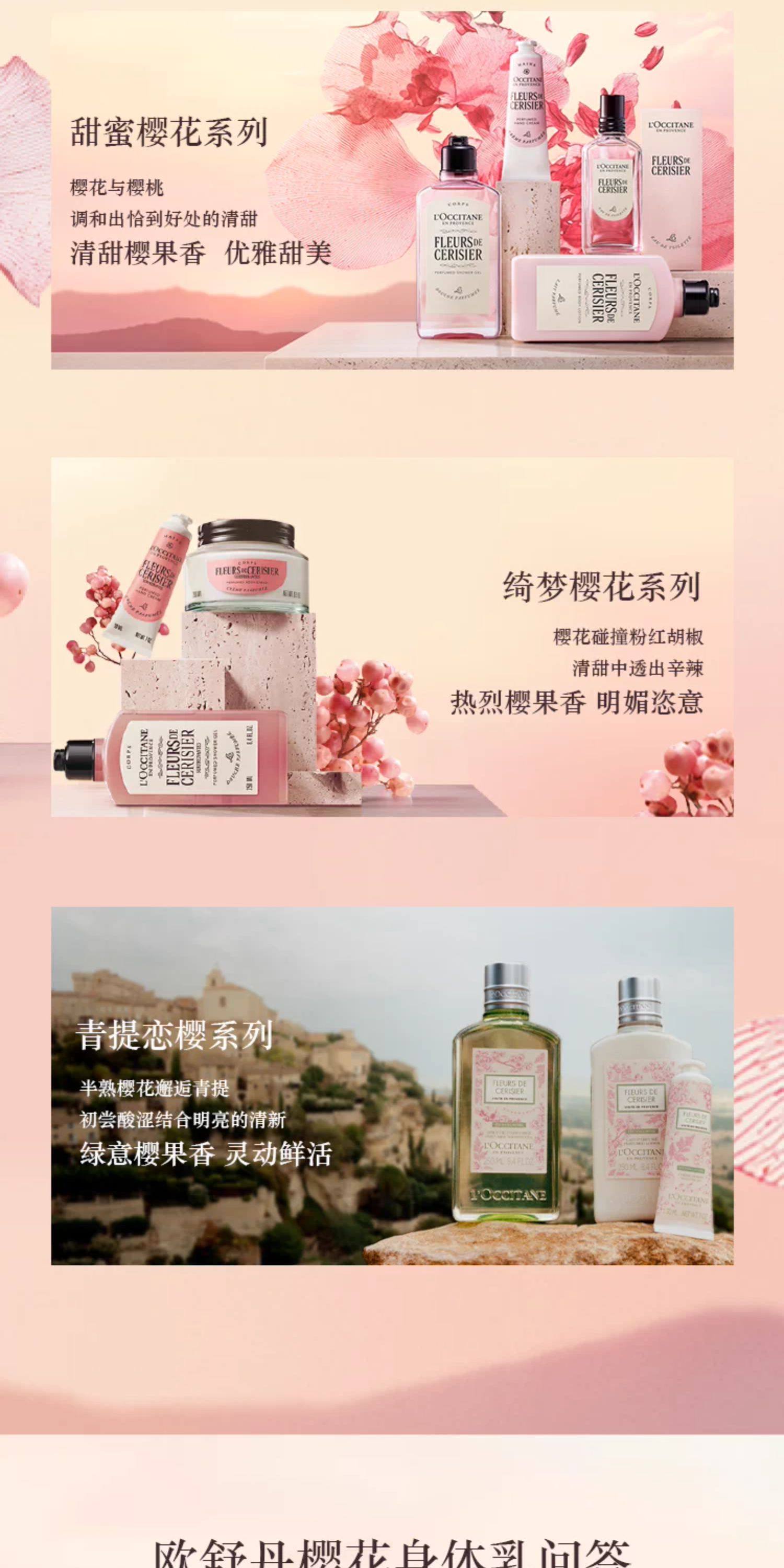 欧舒丹 甜蜜樱花沐浴润肤套装礼盒(樱花身体乳250ml+樱花沐浴露250ml)