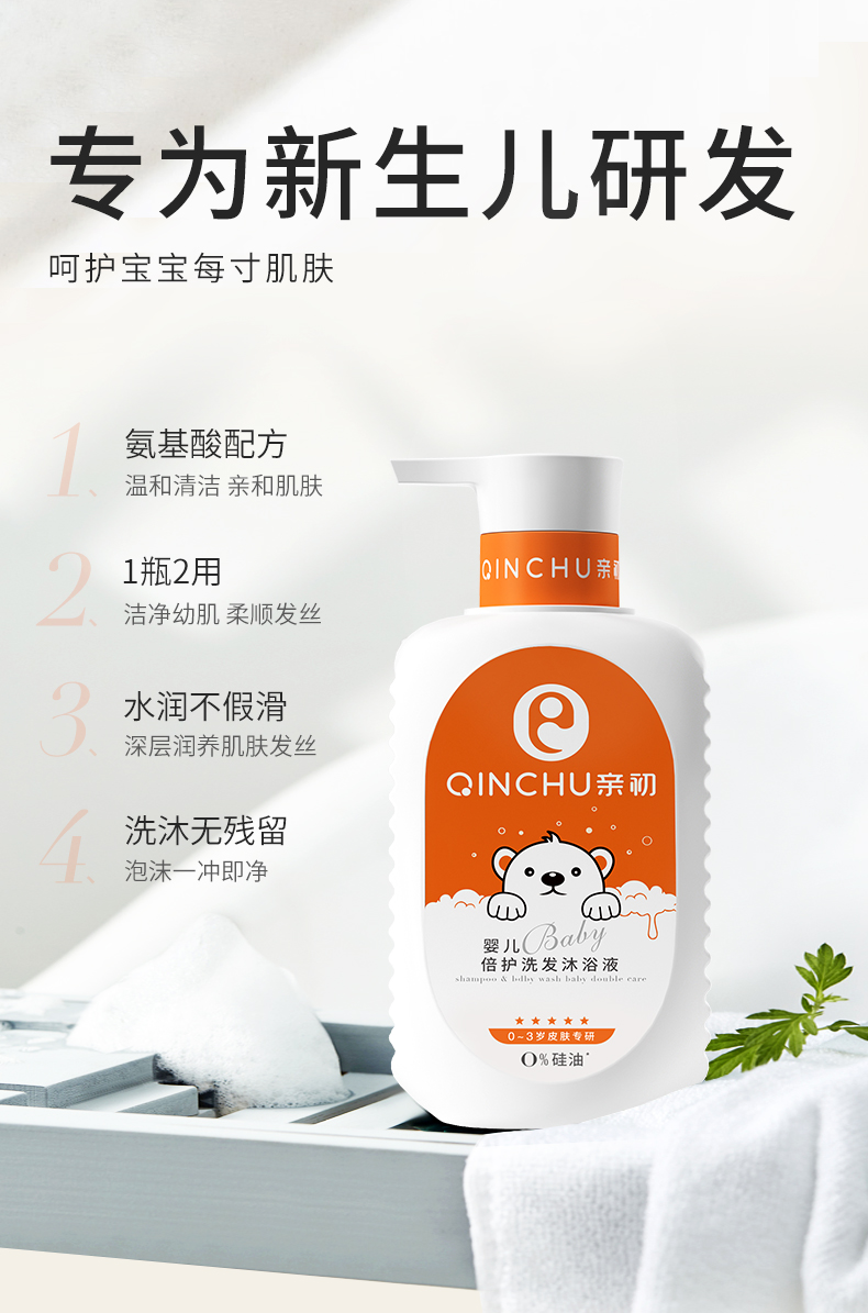 亲初 婴儿倍护洗发沐浴二合一 350ml 泡泡型