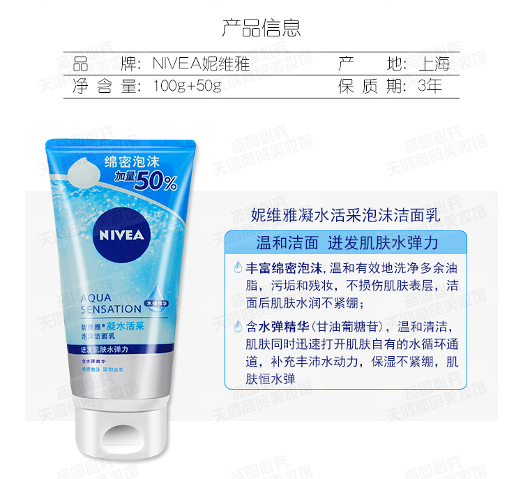 妮维雅凝水活采泡沫洁面乳 150g加量装