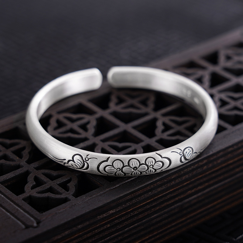 【花蝶相约】子佩集S999银手工手镯原创设计【55061214】2407