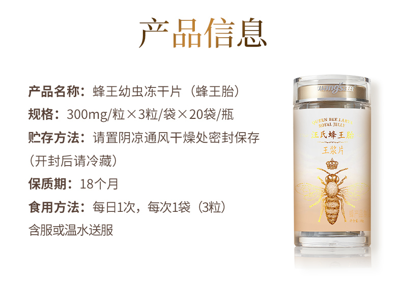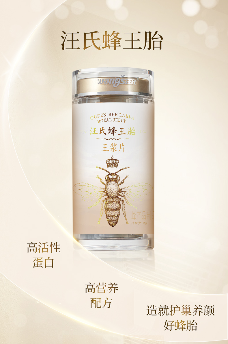 【汪氏】蜂王胎高品质蜂王幼虫冻干滋养王浆礼盒装18g*6瓶