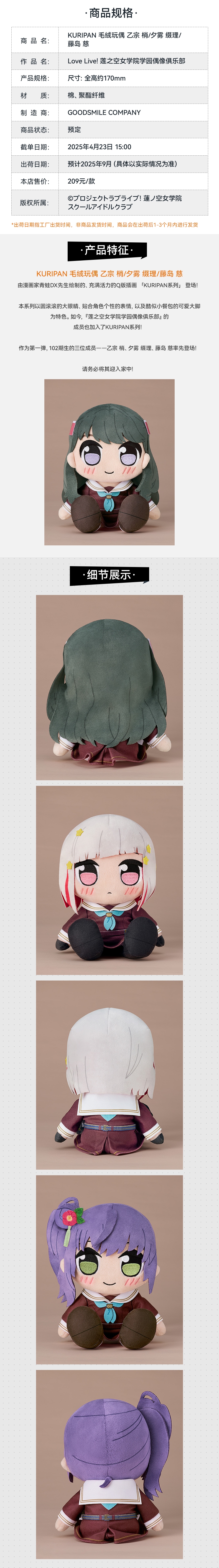 【GSC补款】KURIPAN 毛绒玩偶 乙宗 梢/夕雾 绳理/藤岛 慈 Love Live! 莲之空女学院学园偶像俱乐部