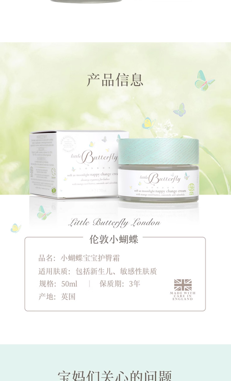 护臀膏50ml | 英国LittleButterfly伦敦小蝴蝶 宝宝护臀膏新生儿pp霜护臀霜屁屁乐 50ml
