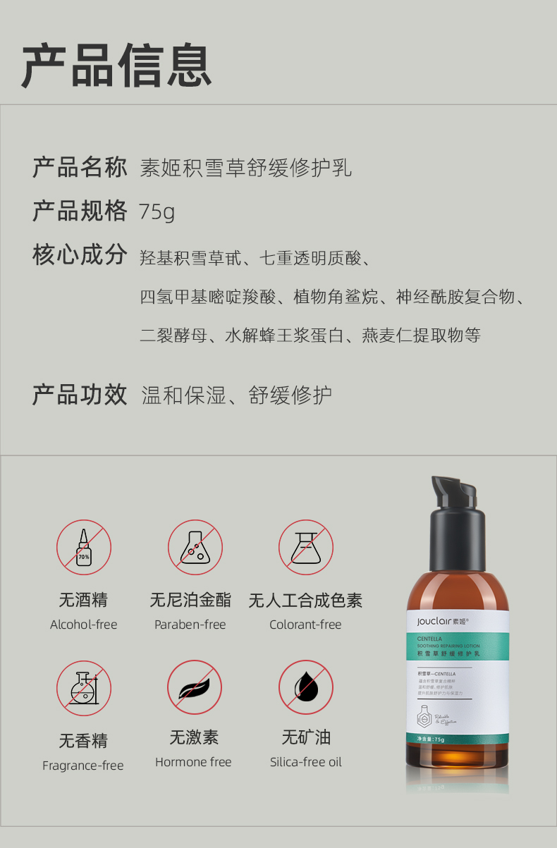 【正品直售】素姬积雪草舒缓修护乳温和补水保湿强韧肌肤乳液
