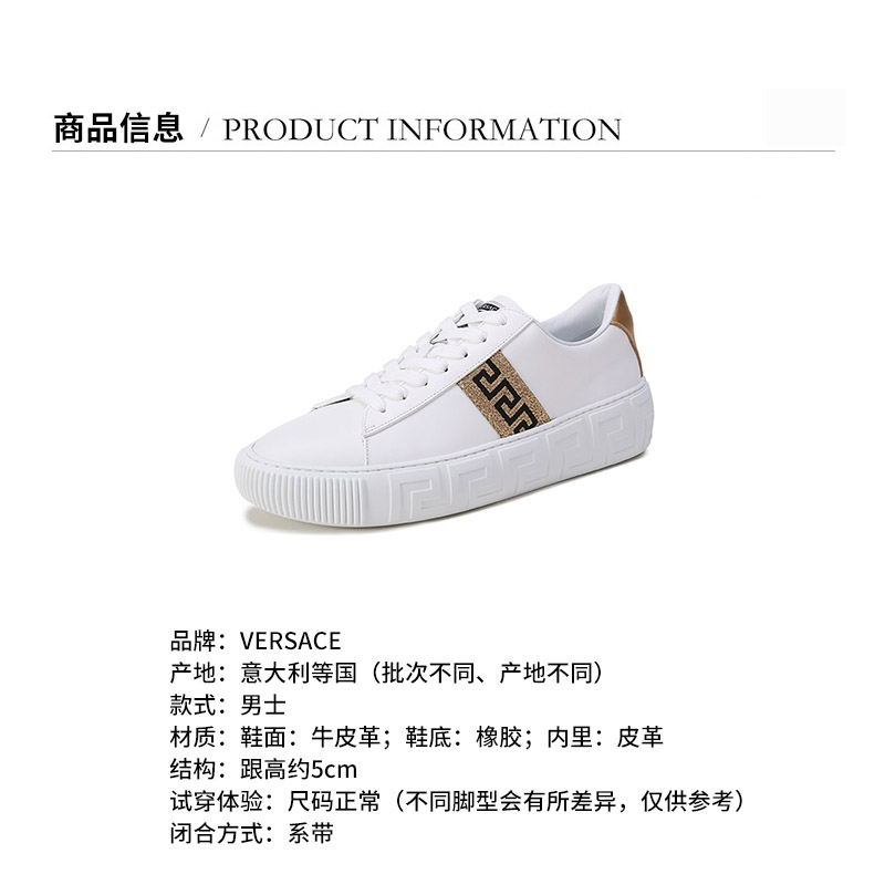 VERSACE/范思哲【22春夏新款】男士牛皮革GRECA系带休闲运动鞋小白鞋 DSU8404 1A01759