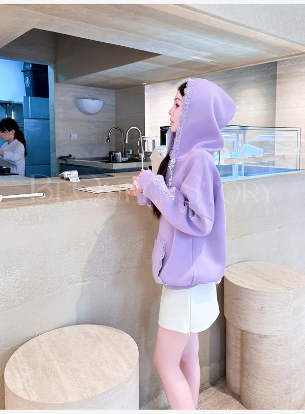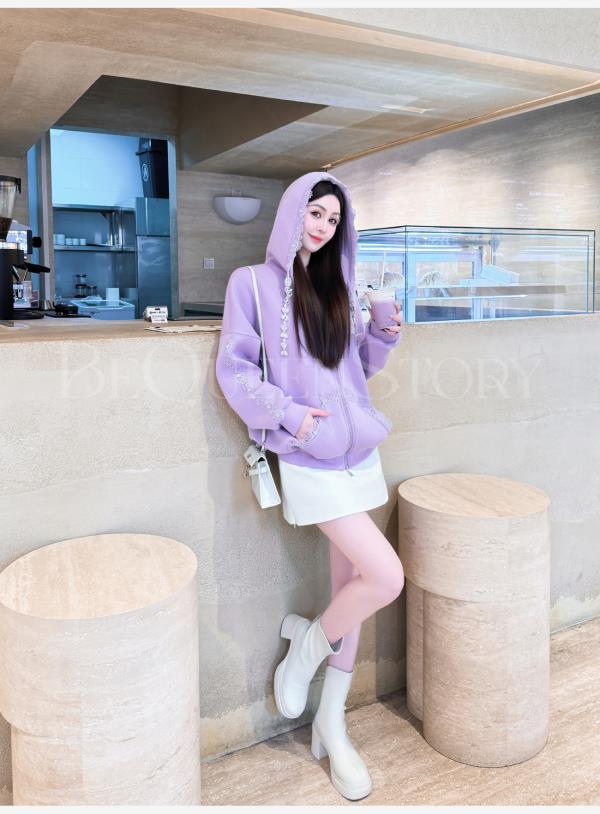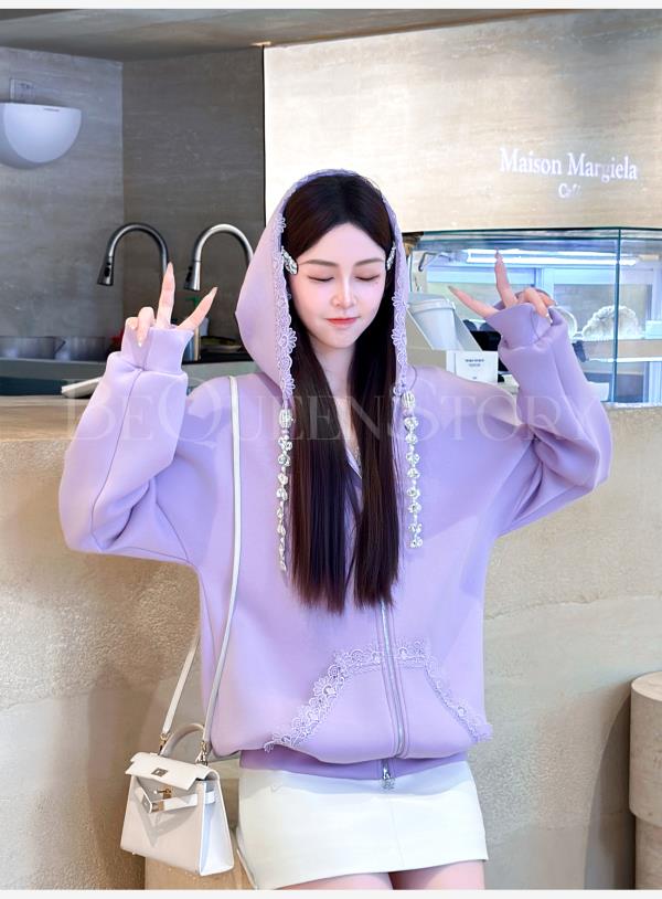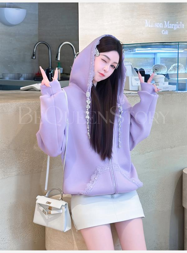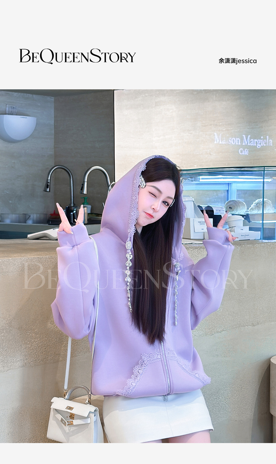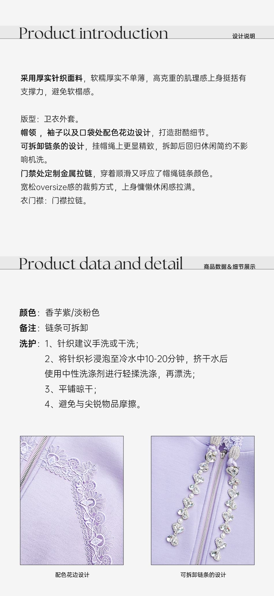 余潇潇【半糖少女】时尚百搭慵懒休闲感卫衣外套配精致可拆卸链条