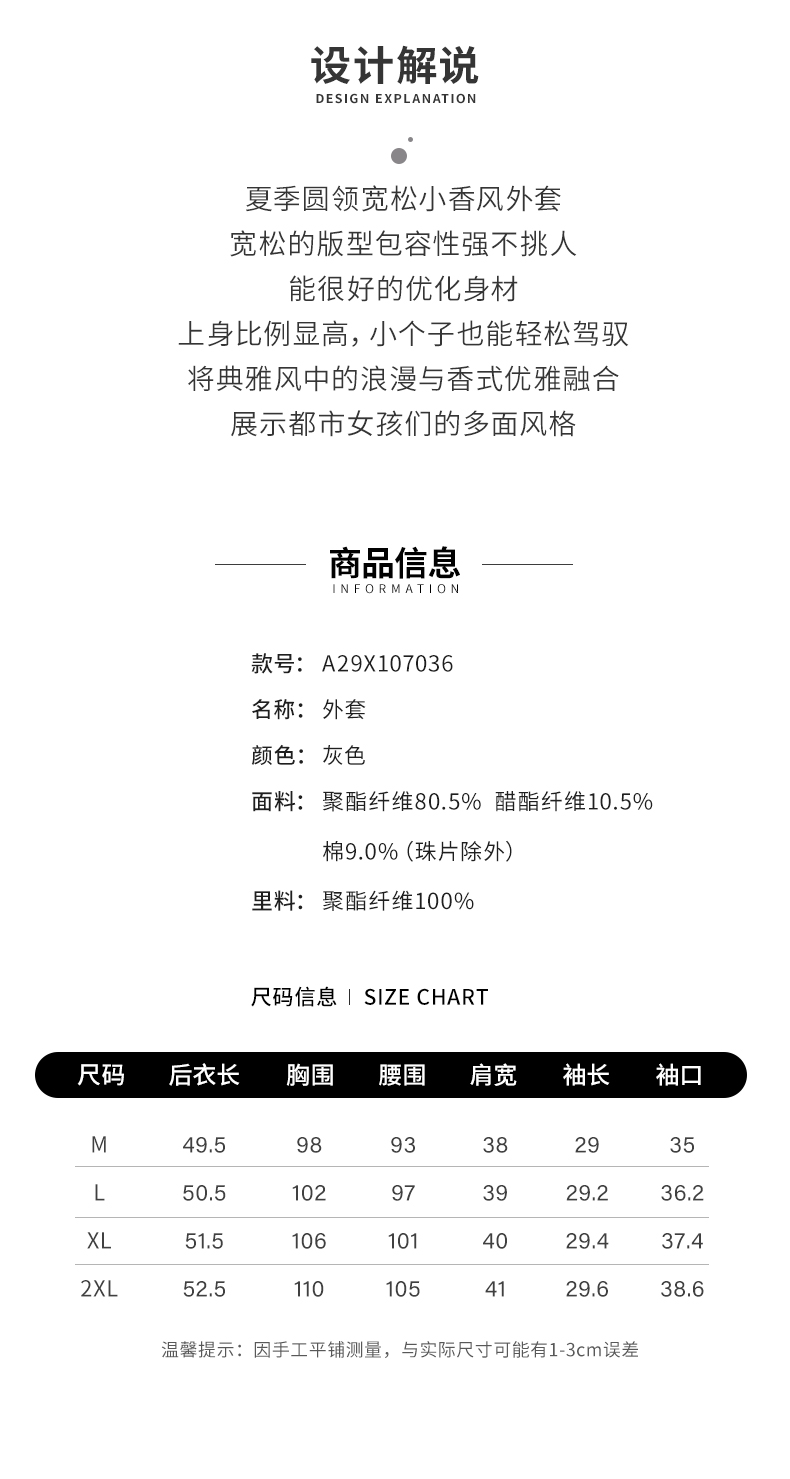 【商场同款】阿菁娜2024夏季新款圆领宽松小香风外套A29X107036