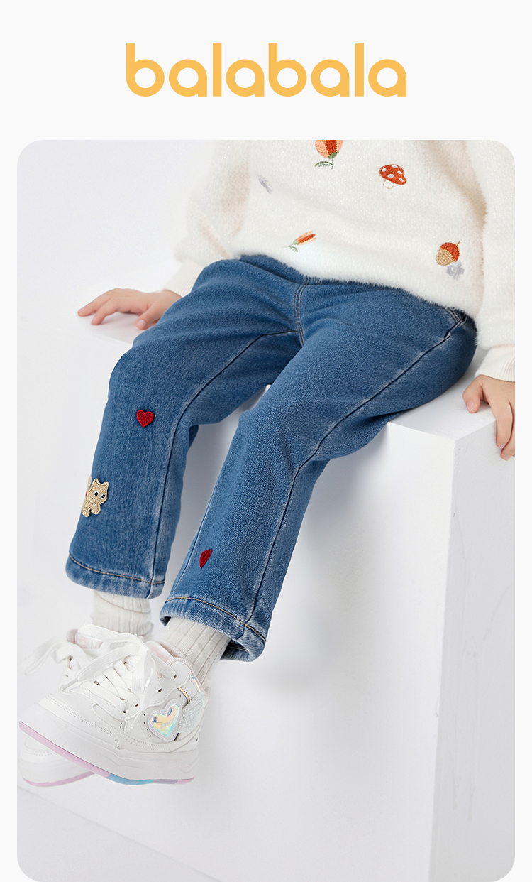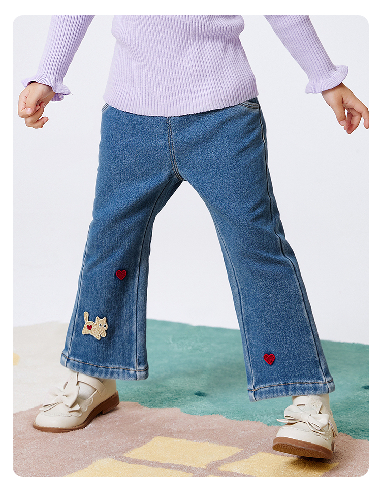 巴拉巴拉宝宝牛仔裤加绒女童微喇裤秋冬2025新款裤子