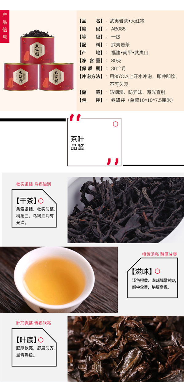 八马茶叶 武夷山岩茶大红袍茶叶正宗乌龙茶自饮散装罐装80克