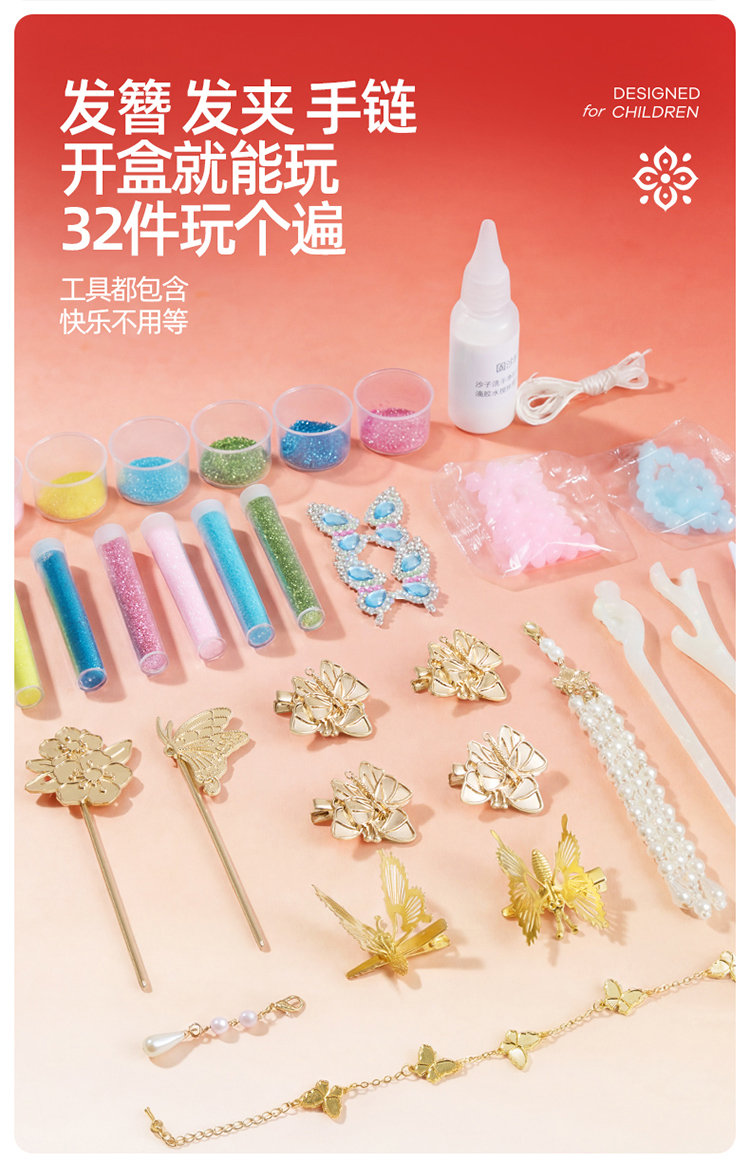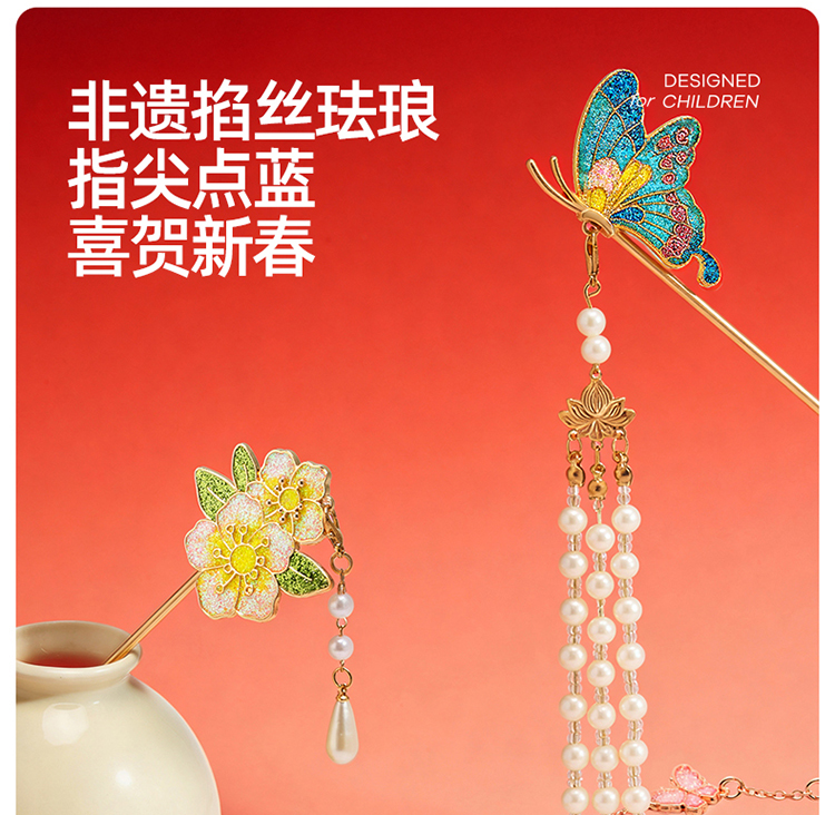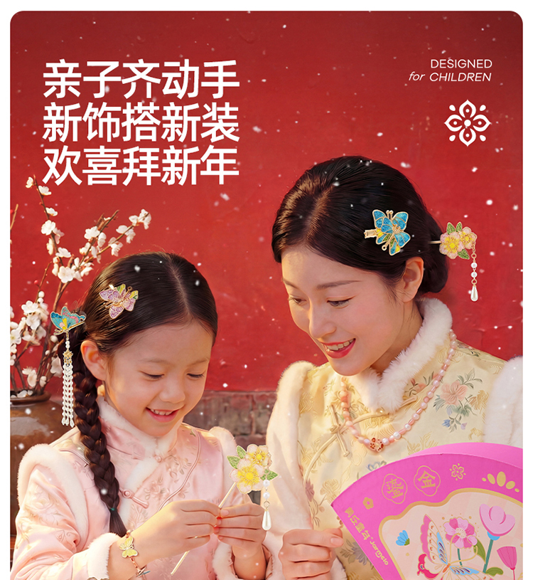 美乐童年儿童发饰礼盒女孩非遗手工diy玩具高级感生日过新年礼物