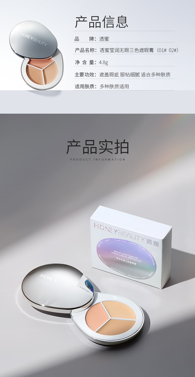 【新品上新】透蜜 莹润无瑕三色遮瑕膏魔镜版4.8g 天然矿物调色打造轻妆无痕顺滑易推开