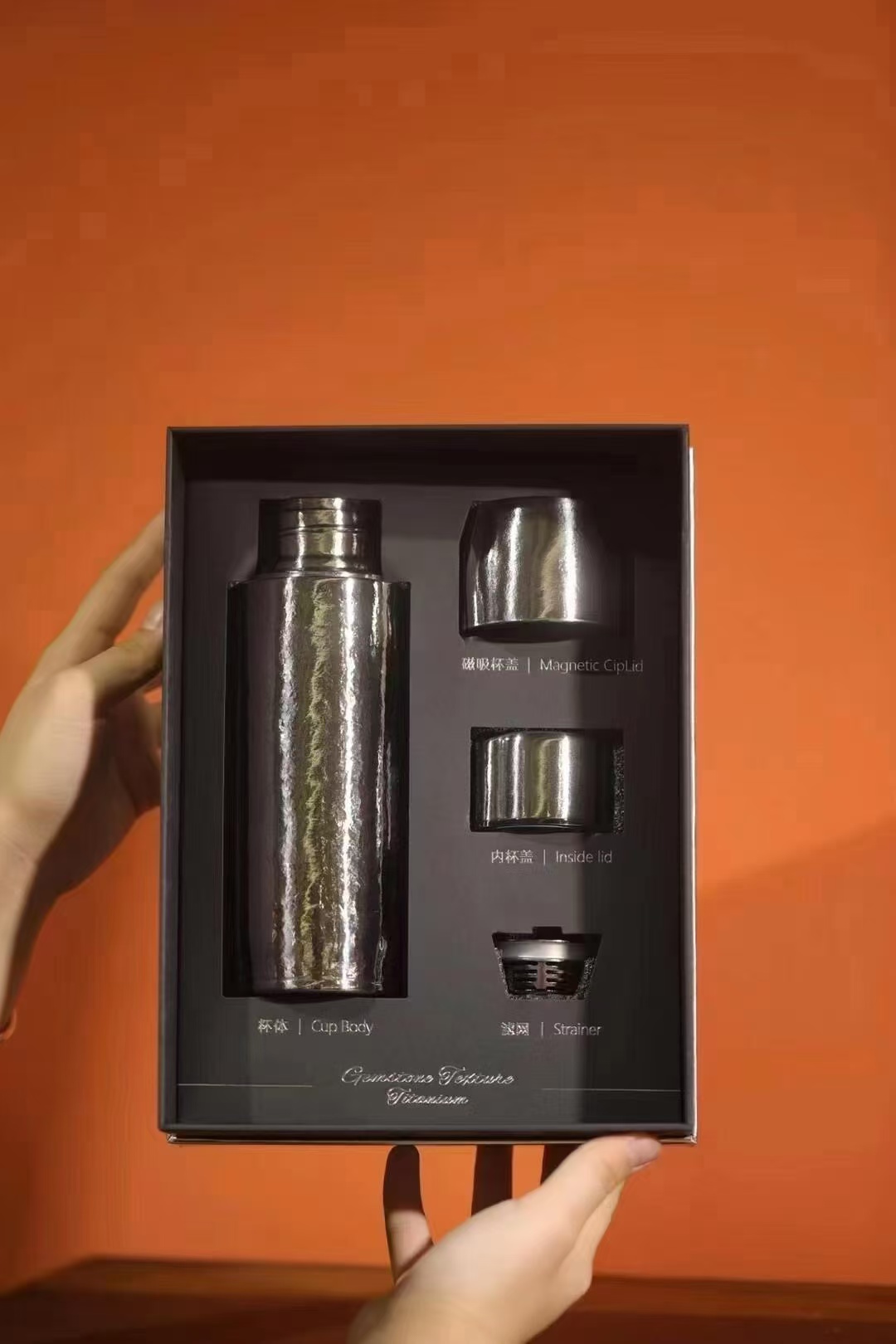 纯钛保温杯带茶隔杯盖可当茶杯磁吸款轻便彩钛双层真空钛杯