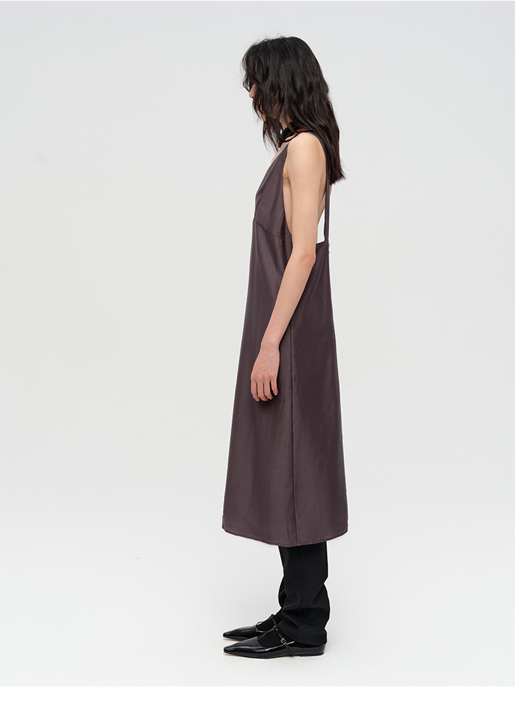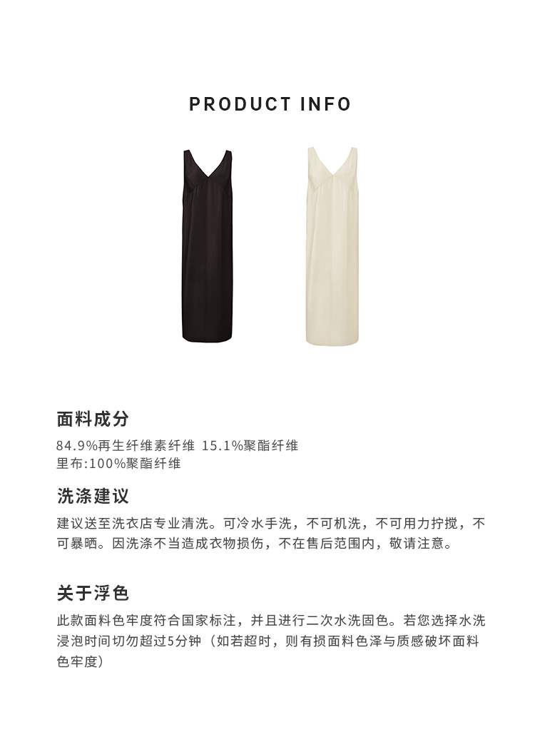 HIDEMI 极简设计感V领立体剪裁廓形茧型宽肩带露背式双层薄纱感连衣裙 奶油白/炭灰色