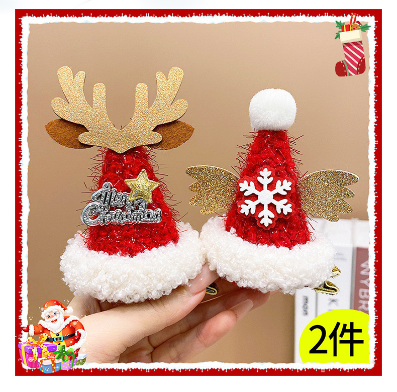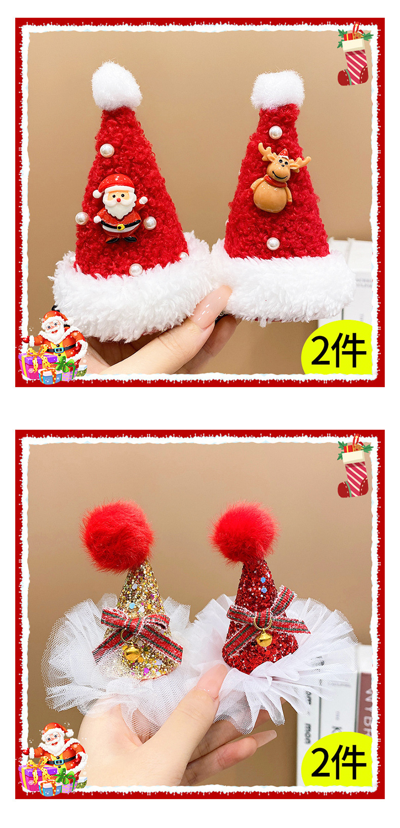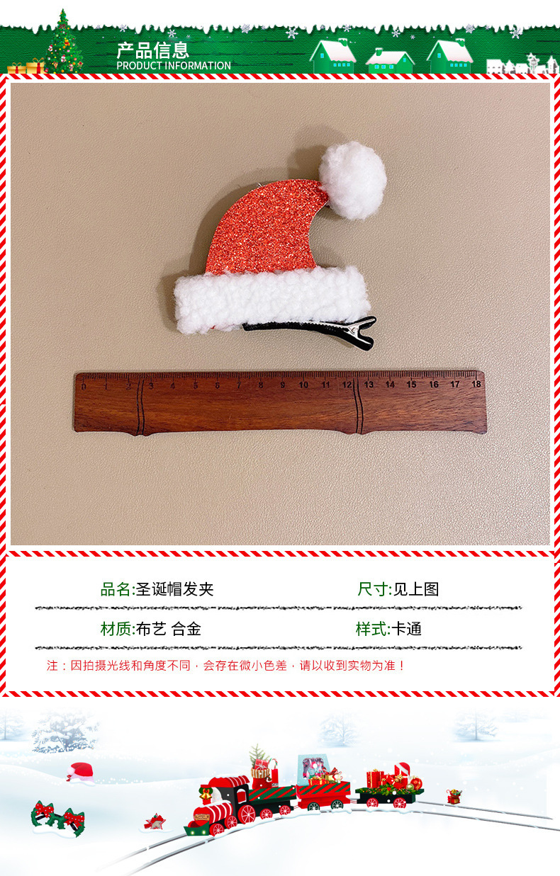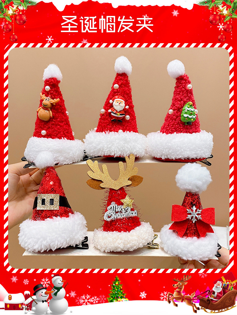 【圣诞帽发夹】儿童发夹头饰红圣诞节帽子表演演出发卡女童发饰甜美毛绒夹子发饰。ry