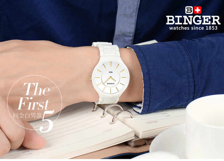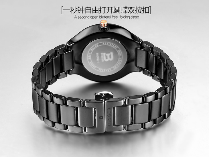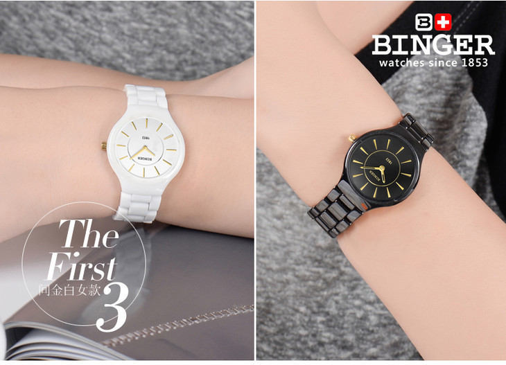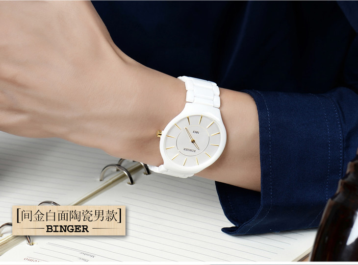 陈小春代言BINGER宾格手表陶瓷表女士手表情侣对表男表防水 佳人
