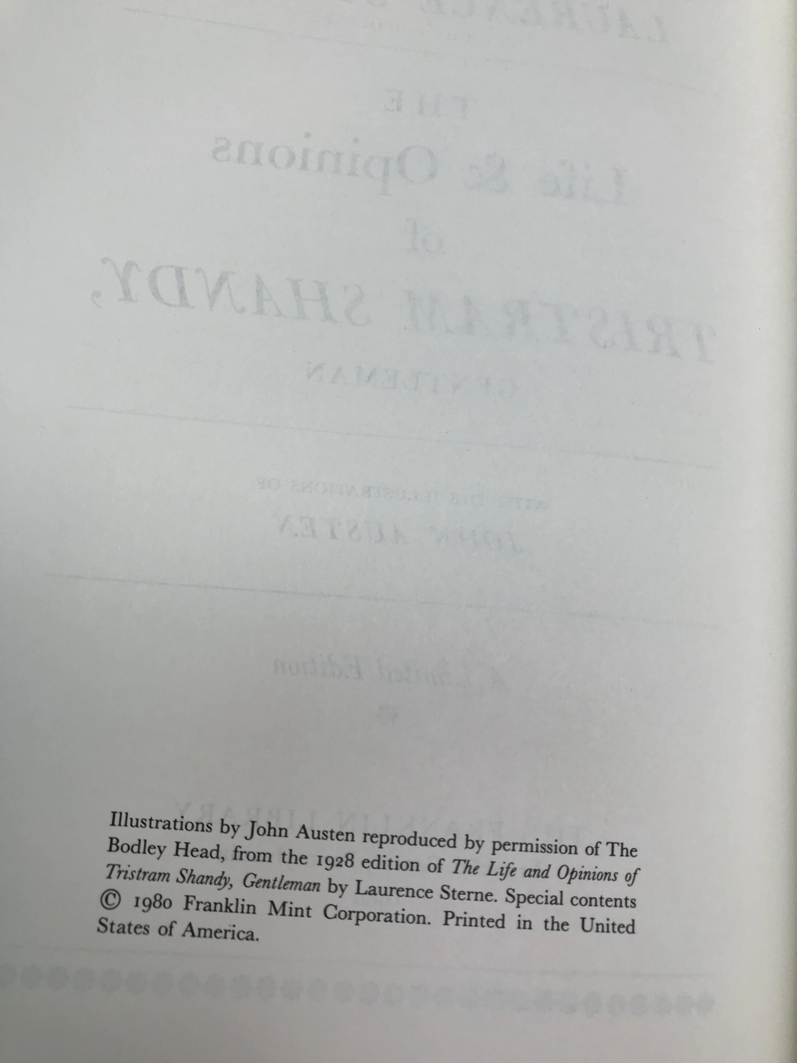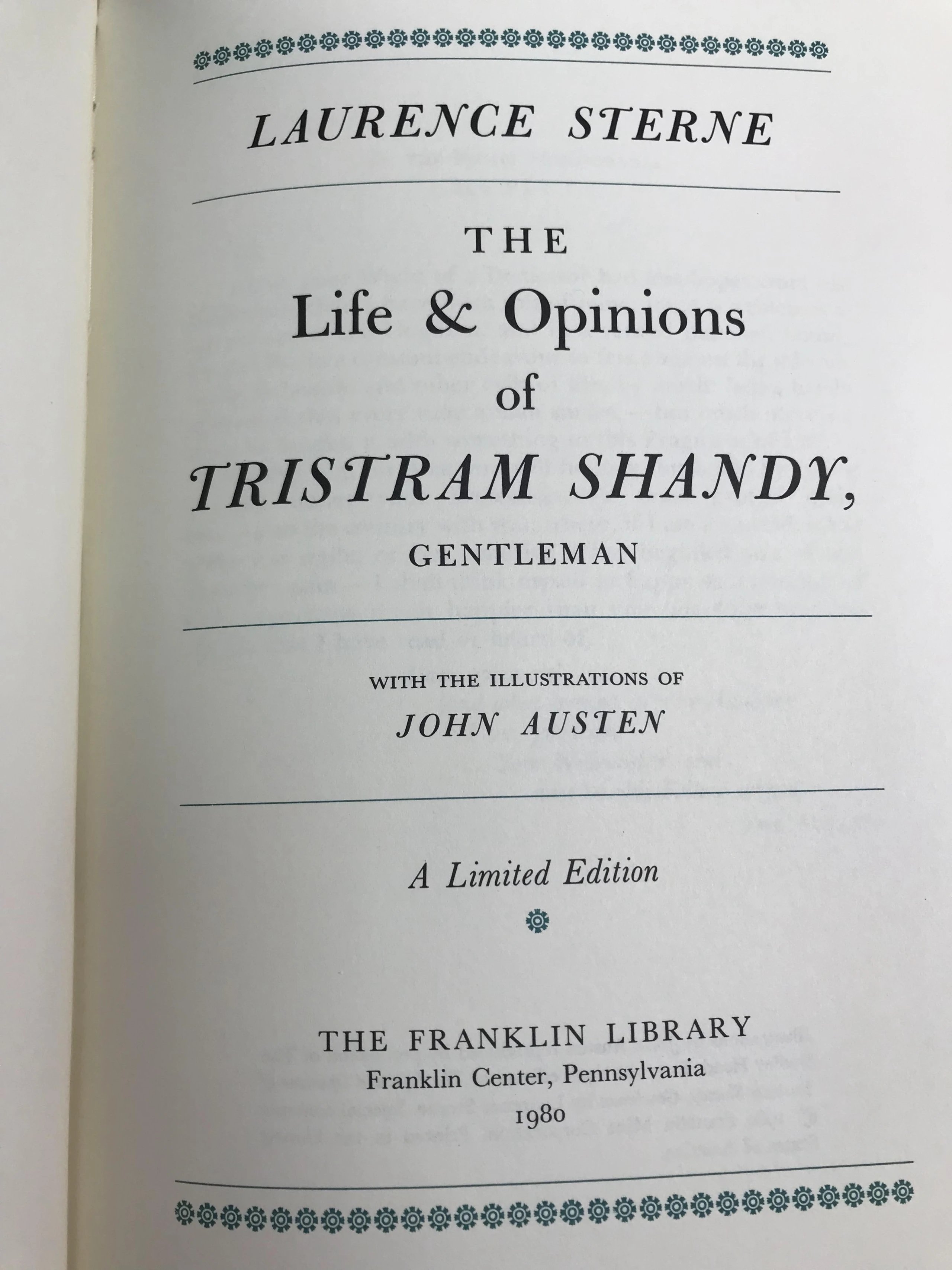 限量版!含藏书票 劳伦斯・斯特恩《项狄传》 配插图 富兰克林图书馆豪华皮装本