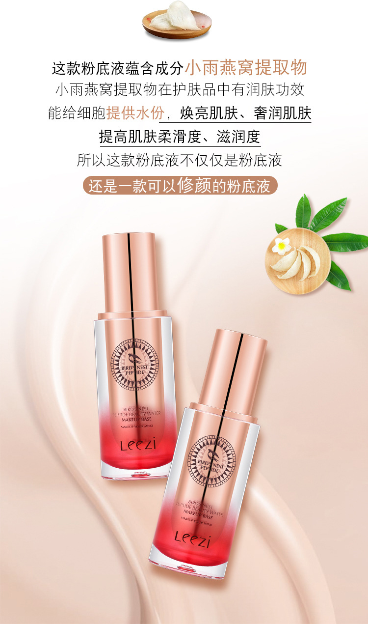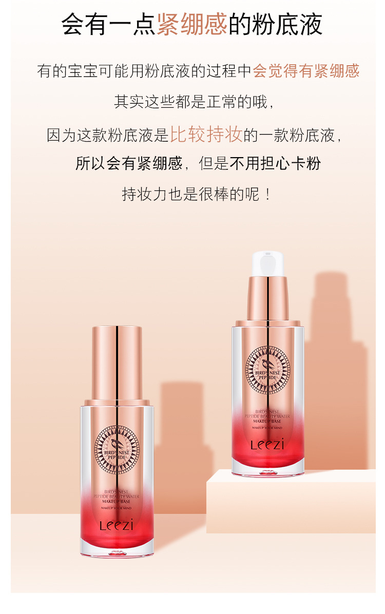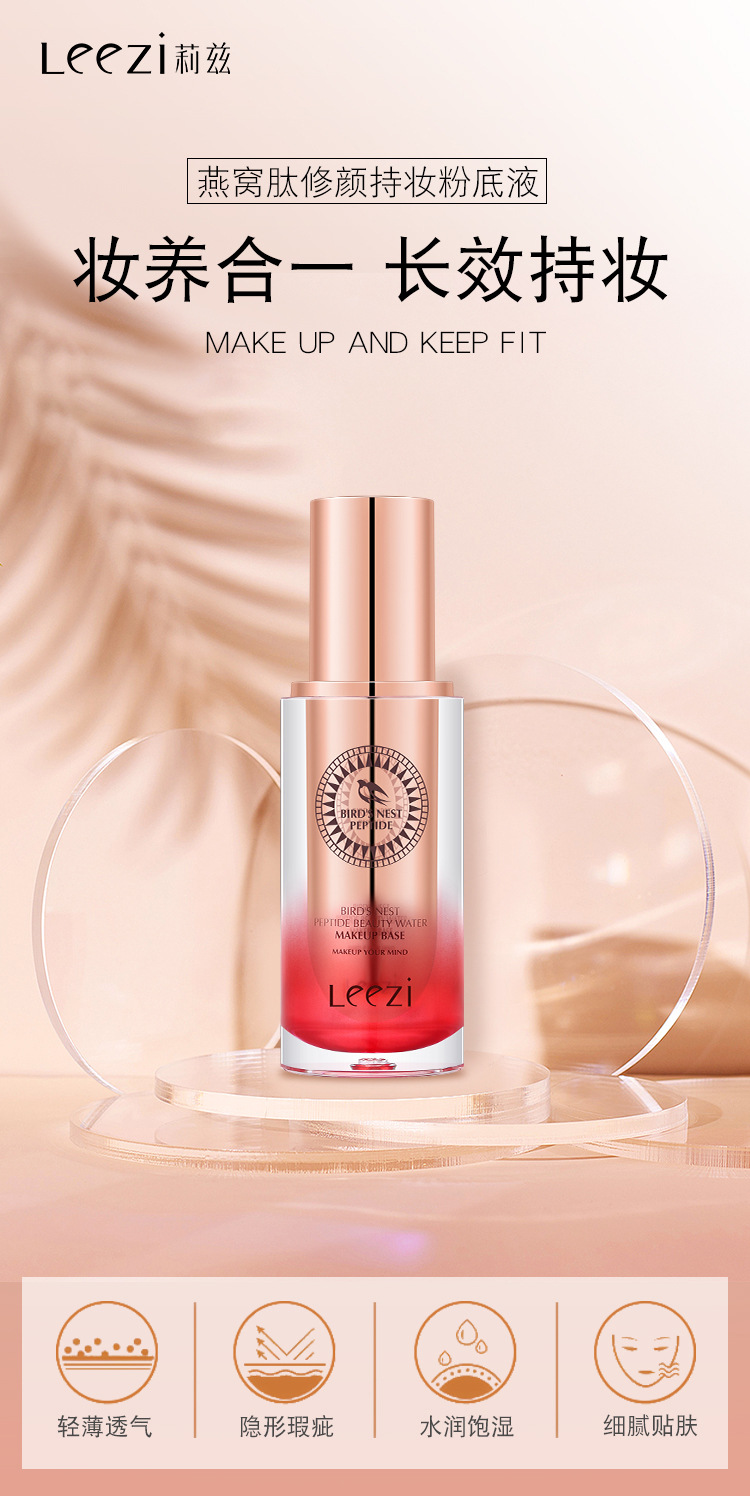 【活力融入,肌肤奇幻演绎!】leezi莉兹燕窝肽修颜持妆粉底液遮瑕隐形毛孔自带定妆防水不脱妆