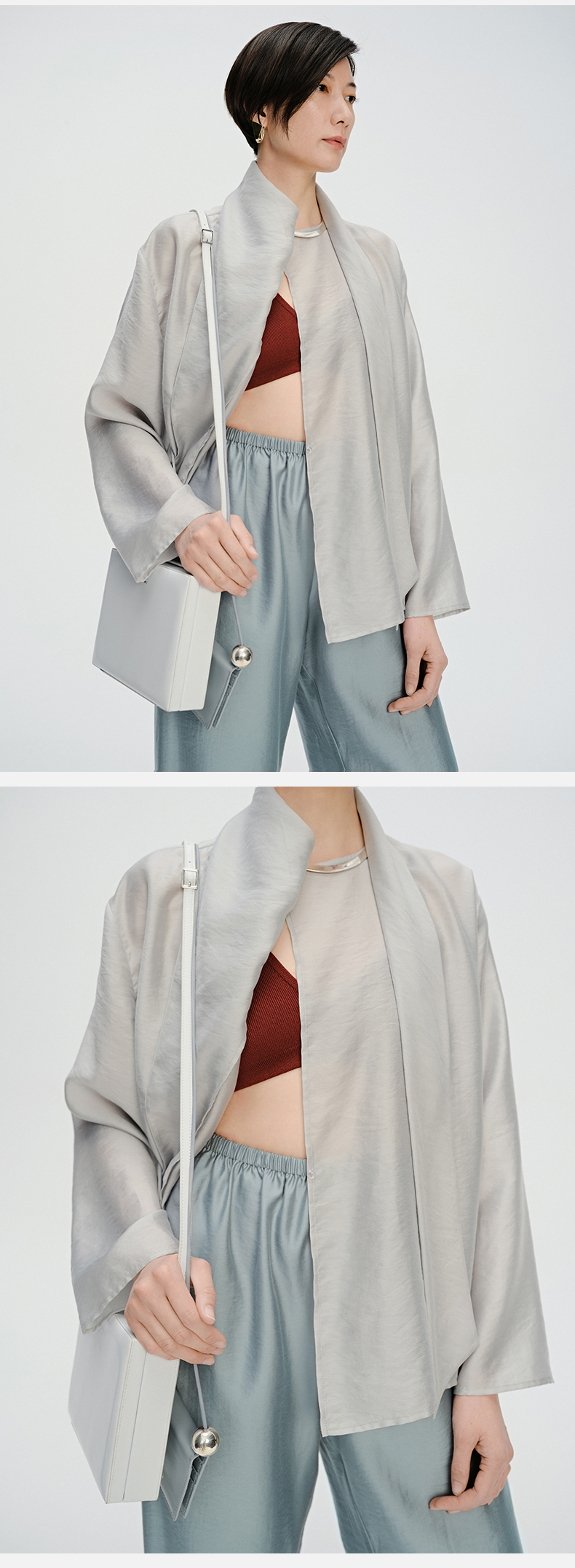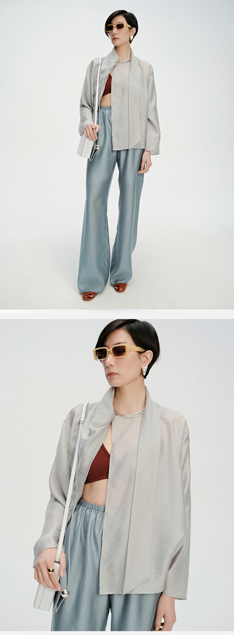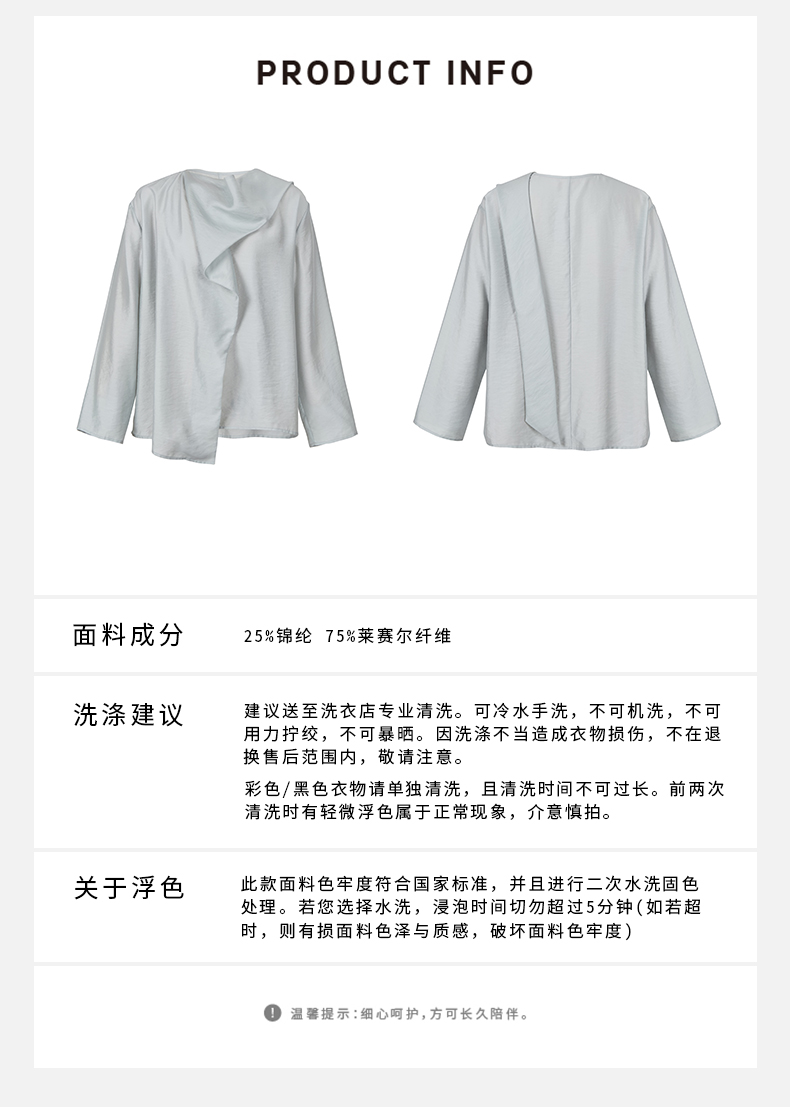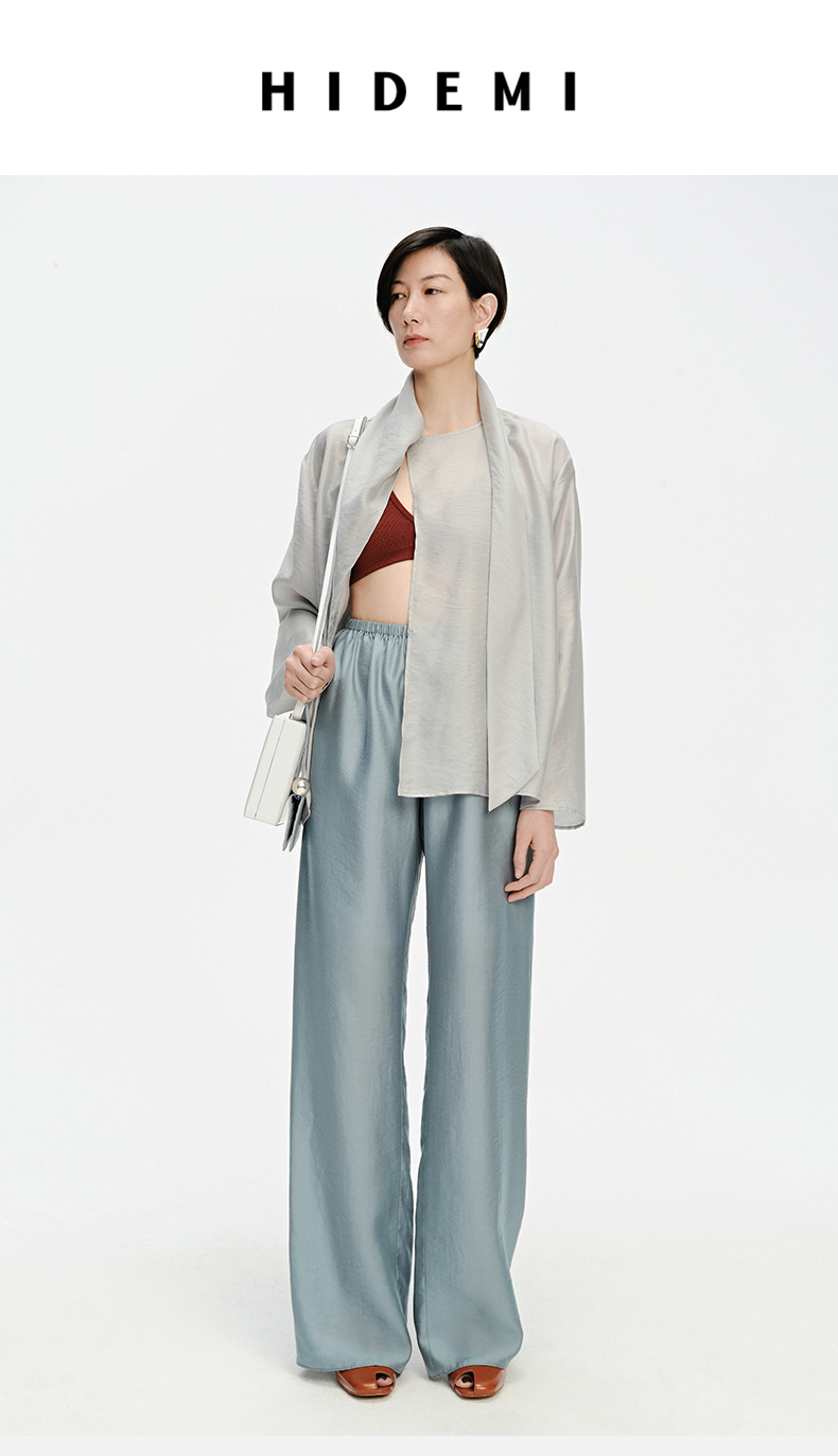 HIDEMI 轻盈风缕感雾霾蓝不对称丝巾式气质简约多穿上衣