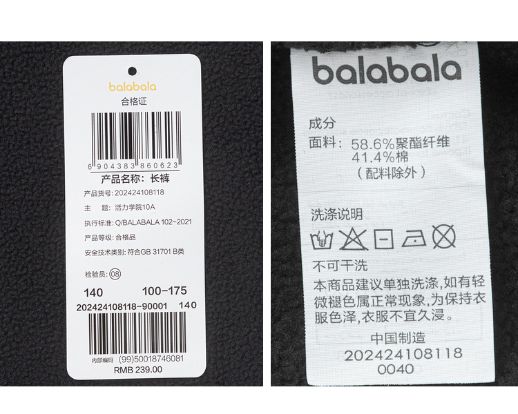 巴拉巴拉童装儿童裤子男童秋冬装加绒长裤潮洋气保暖休闲大童时尚
