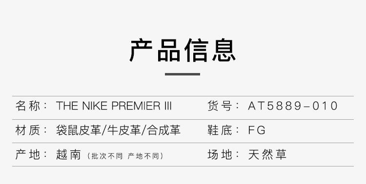 NIKE/耐克 The Nike Premier III FG The Nike Premier III 传奇Fg长钉袋鼠皮人草足球鞋成人男AT5889-010
