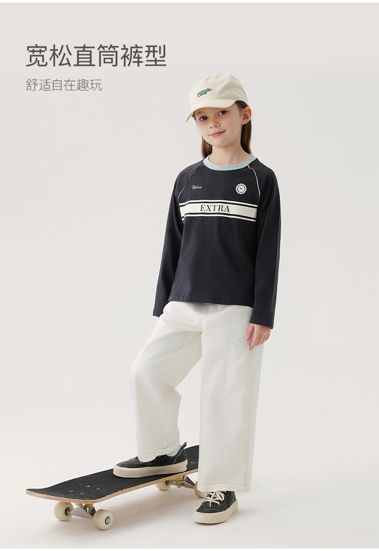 马克珍妮女童纯棉百搭直筒牛仔裤儿童裤子2024年春装新款240216