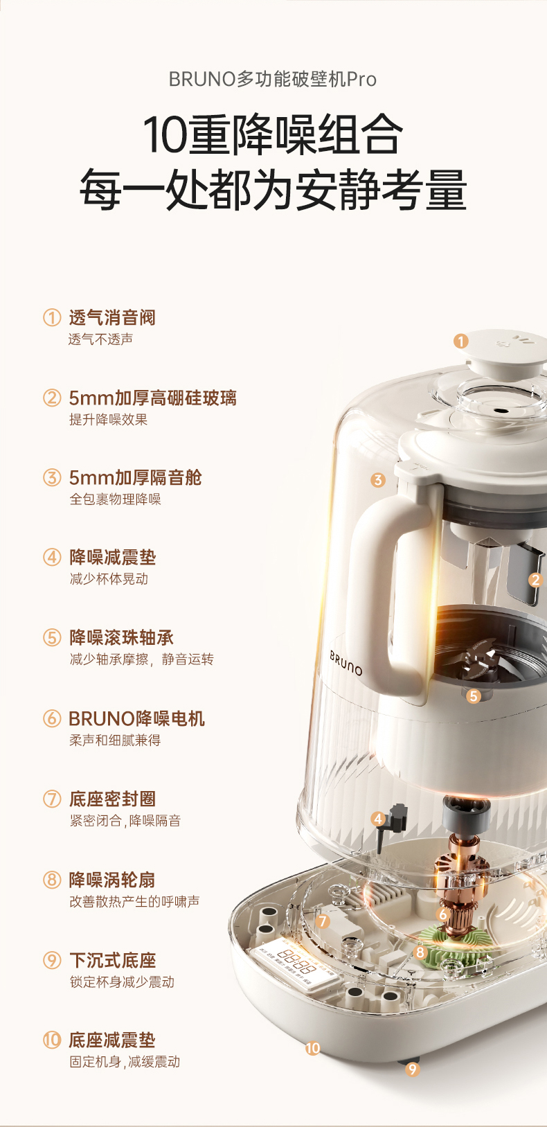 【创新自动投豆】BRUNO多功能破壁机Pro BZK-PBJ12B02-IV 镀钛发热盘+刀片 提升细腻度 45分贝轻静 13大功能 自清洗洪干 容量1.2L