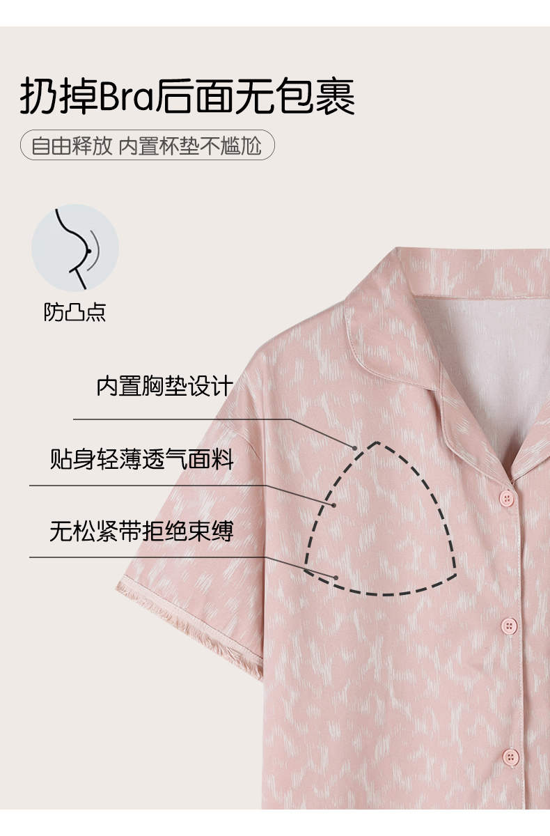 可人儿小众设计师新款奥力绵女士睡衣夏季三件套可外出家居服套装