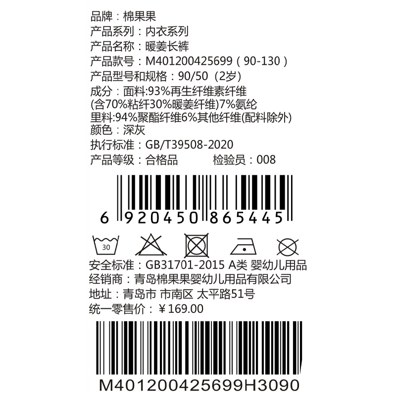 | 裤长 | 48.5 | 54.5 | 60.5 | 66.5 | 73 |