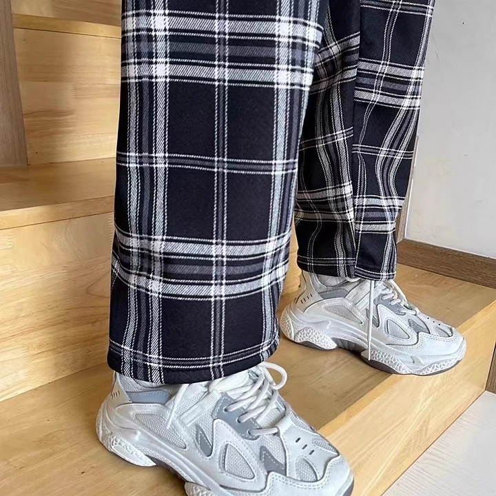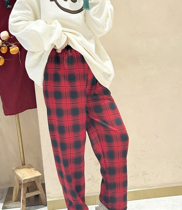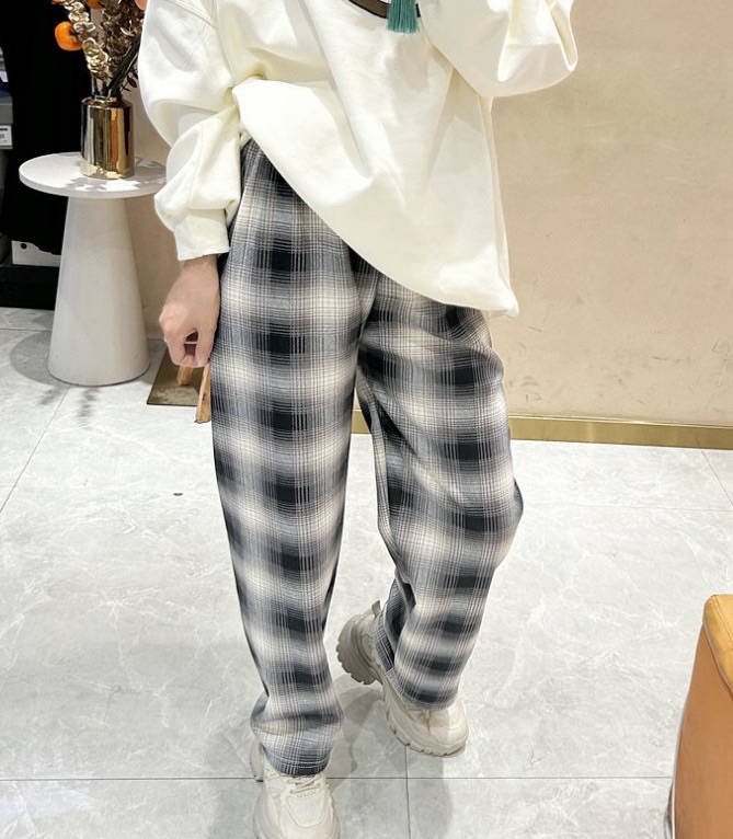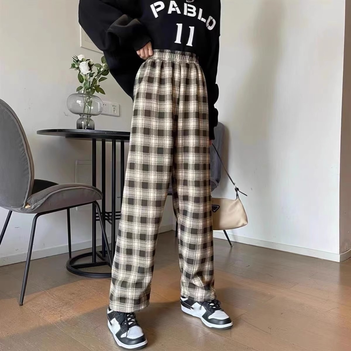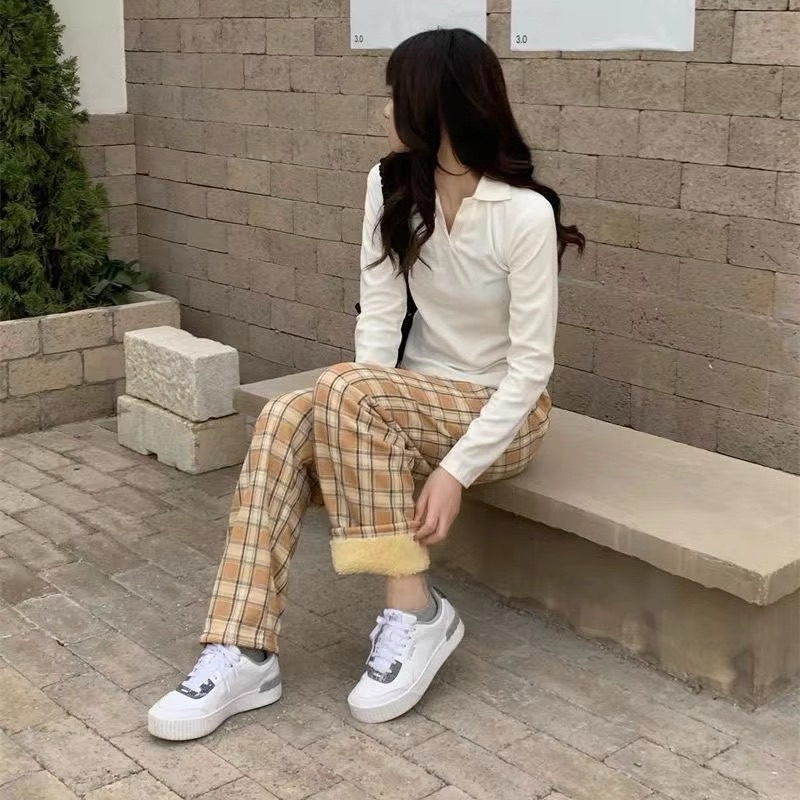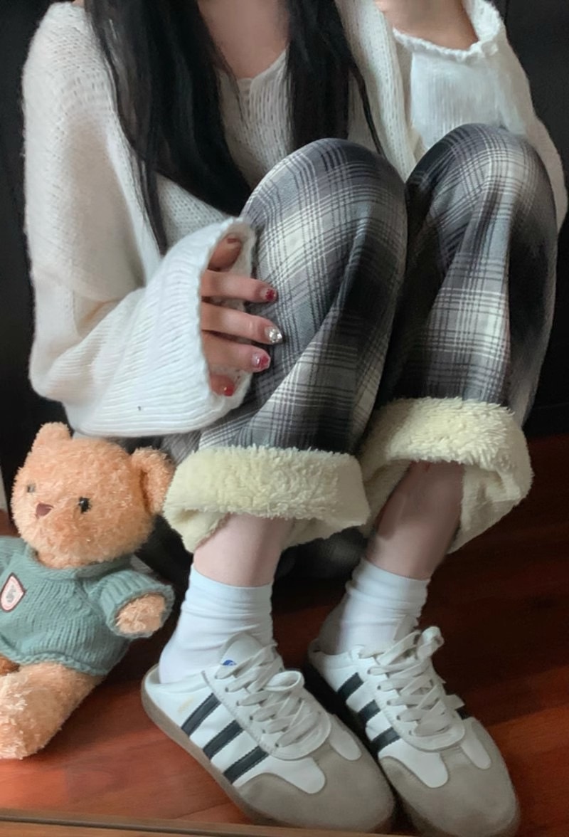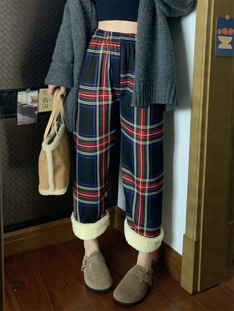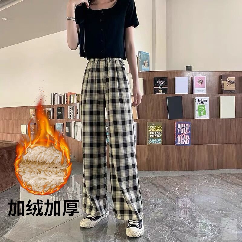 加厚加绒格子裤直筒裤高腰羊羔绒阔腿裤167946279(3-5天发货)