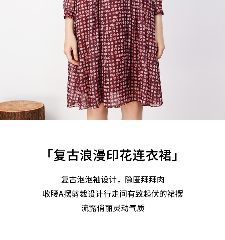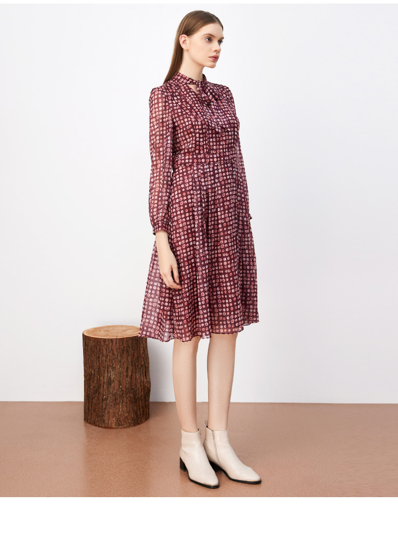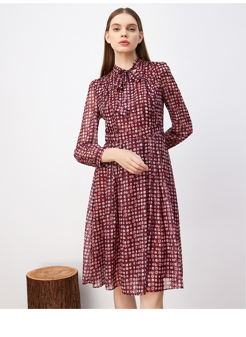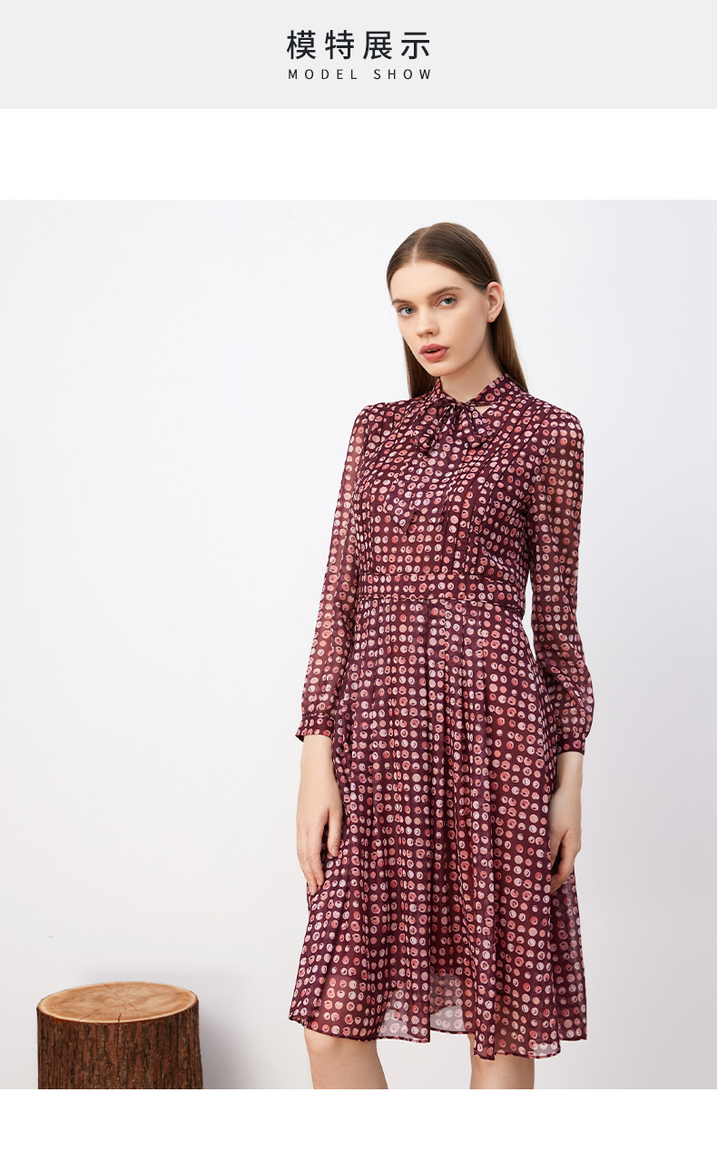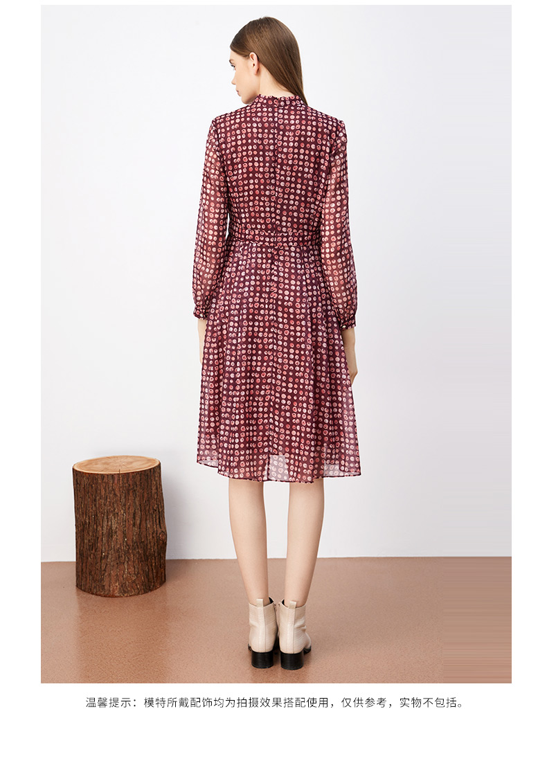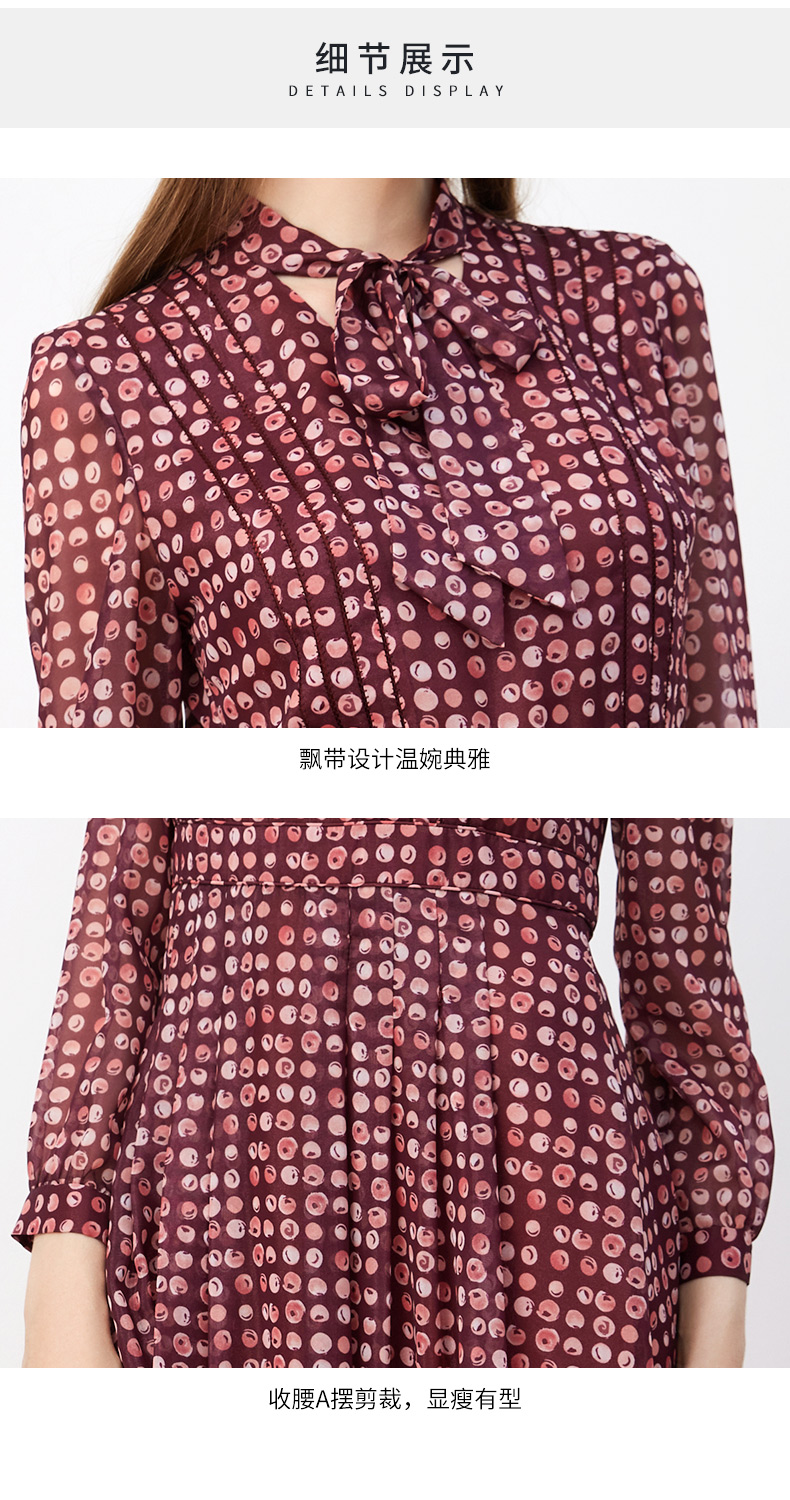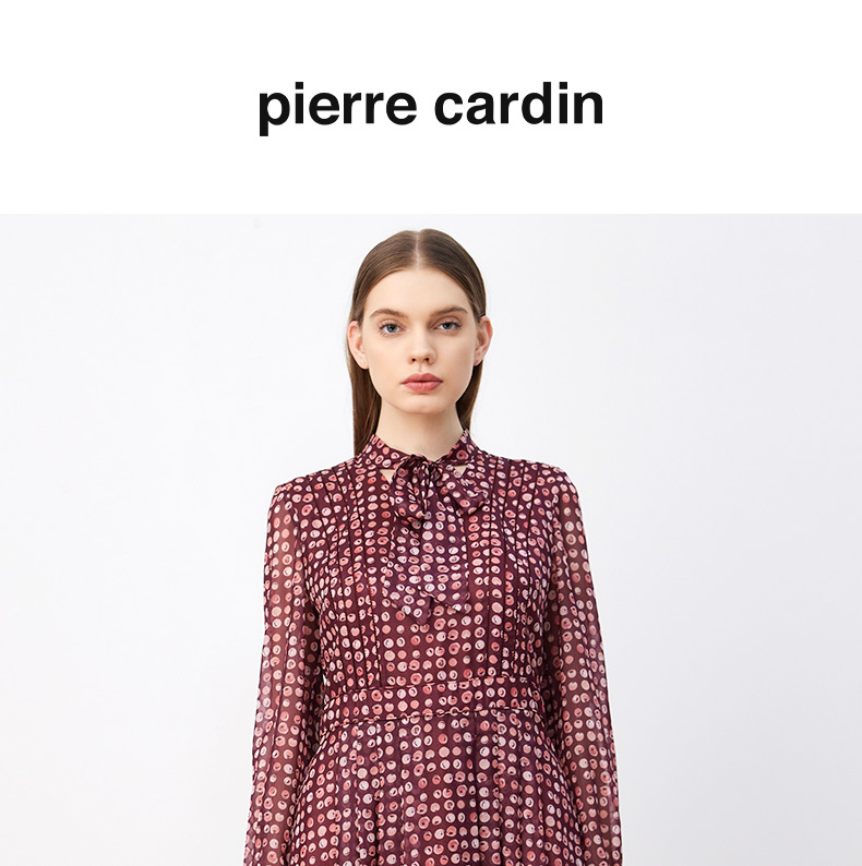 皮尔卡丹女装连衣裙红色波点长袖立领A字裙大摆裙P3351E3879T3