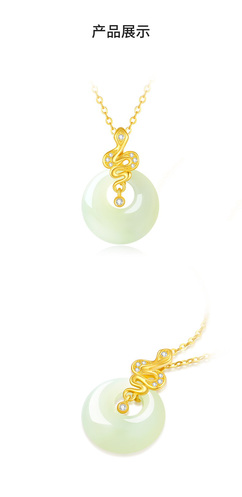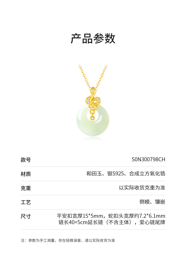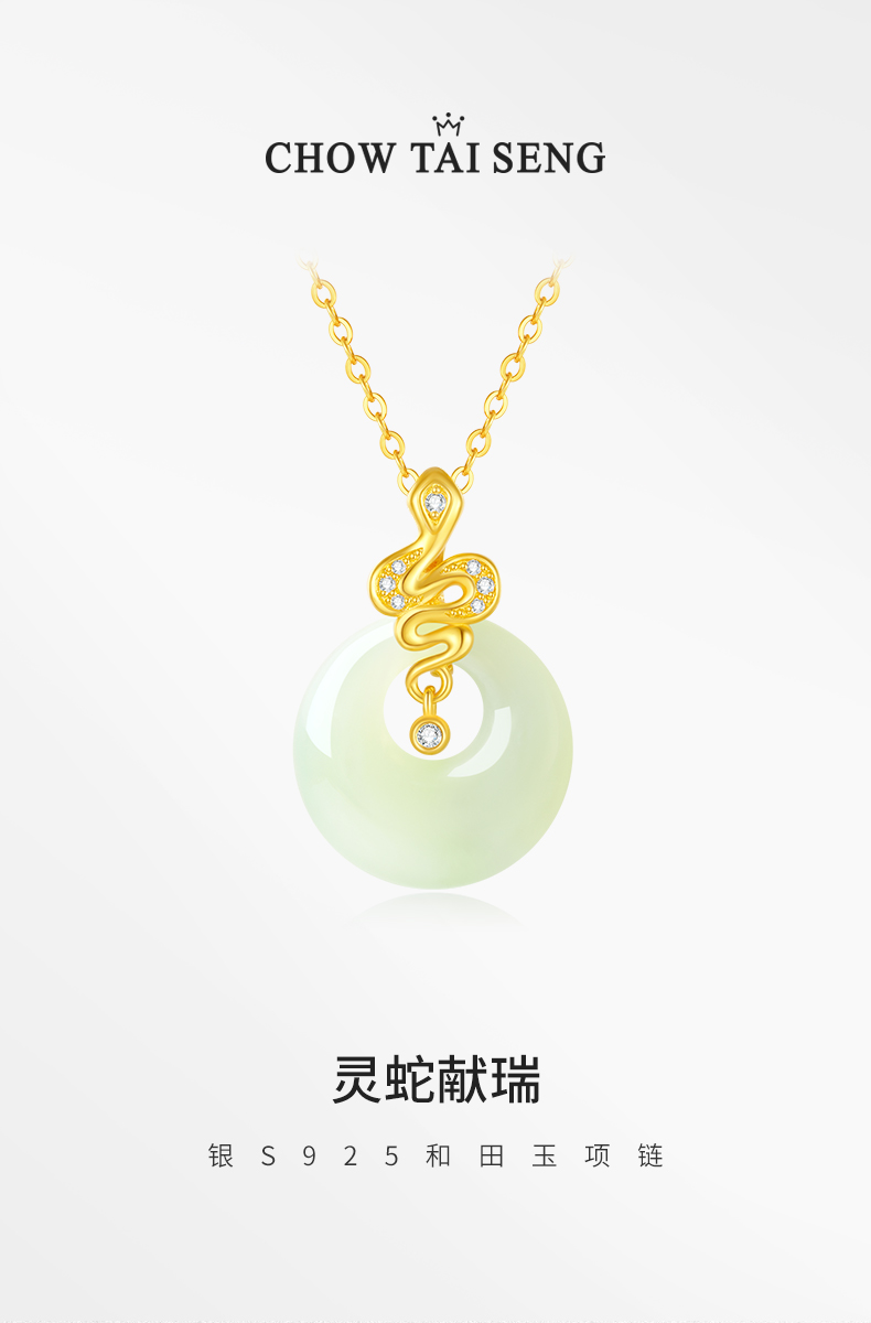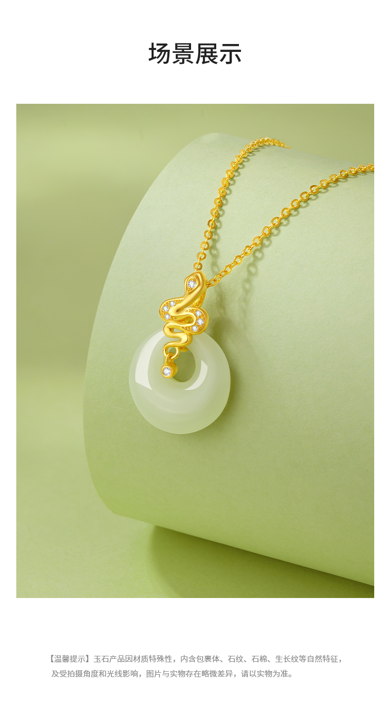 周大生平安扣生肖蛇项链和田玉国风新中式锁骨链生日礼物送妈妈Y