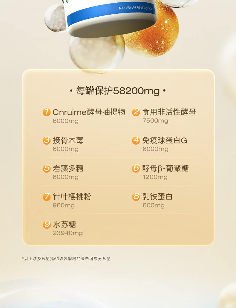 爱毕可9复合粉大营养免疫球乳铁蛋白epicor岩藻多糖接骨木莓酵母