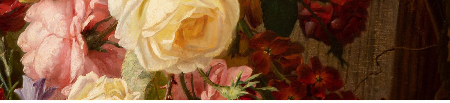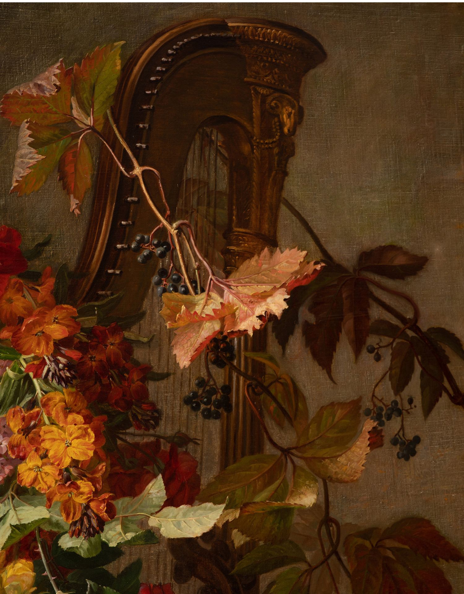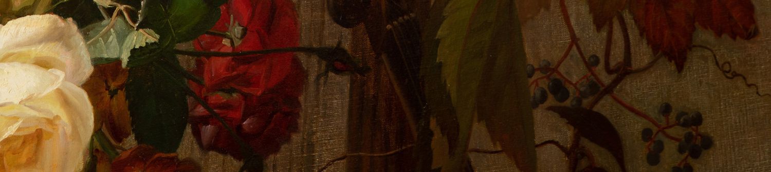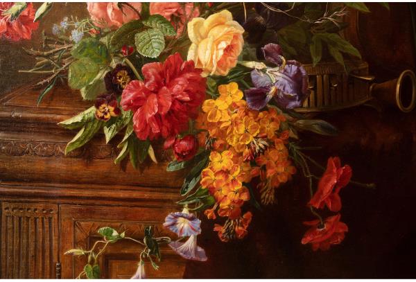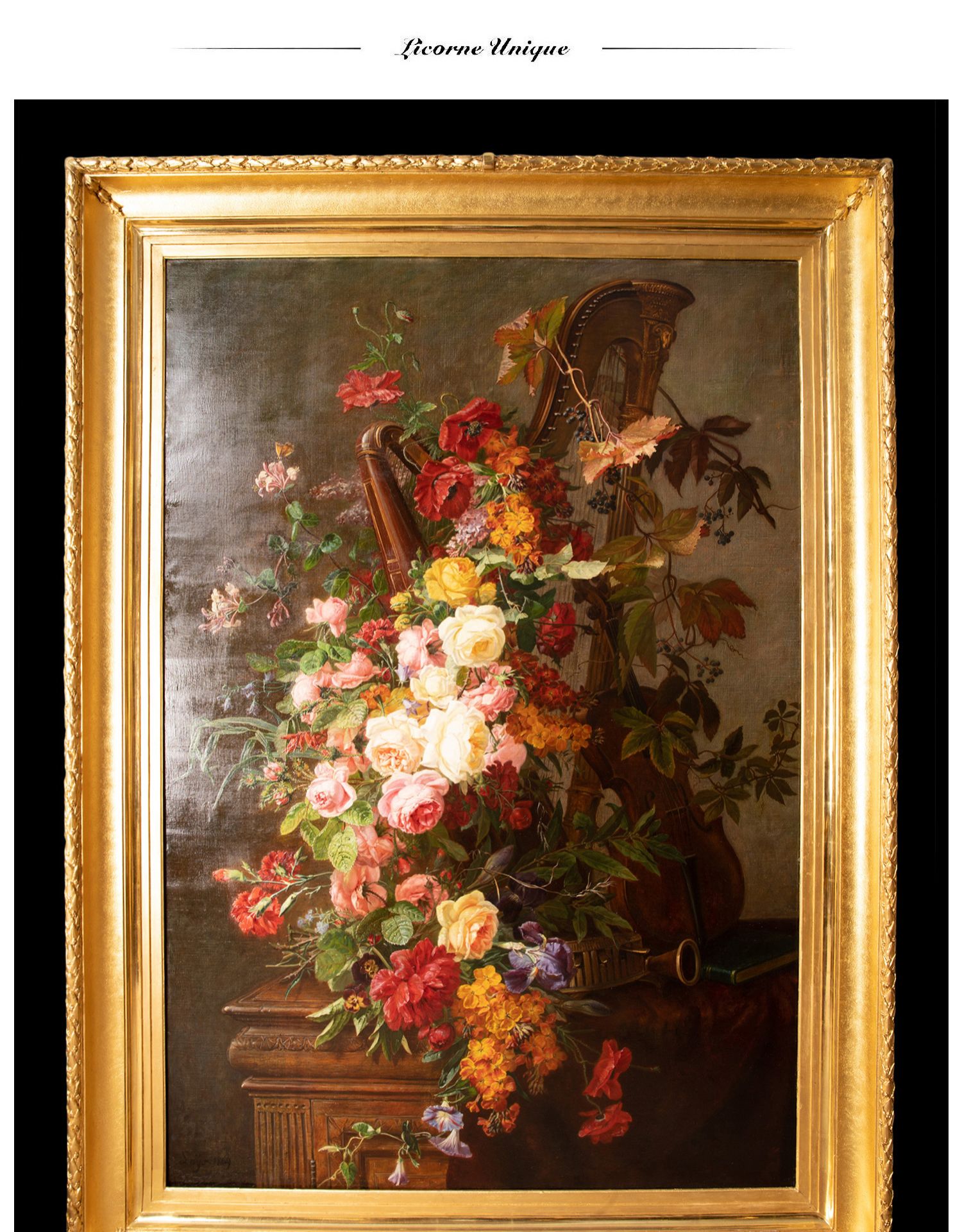 独角鹿西洋古董法国画家Jean-Pierre La?s布面油画鲜花与乐器