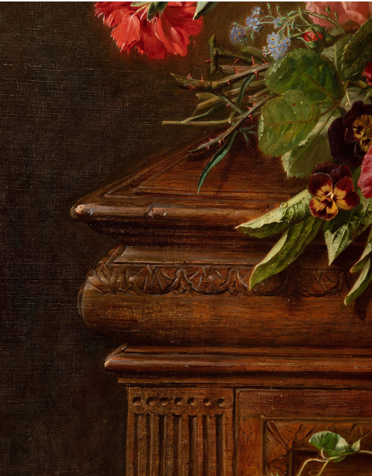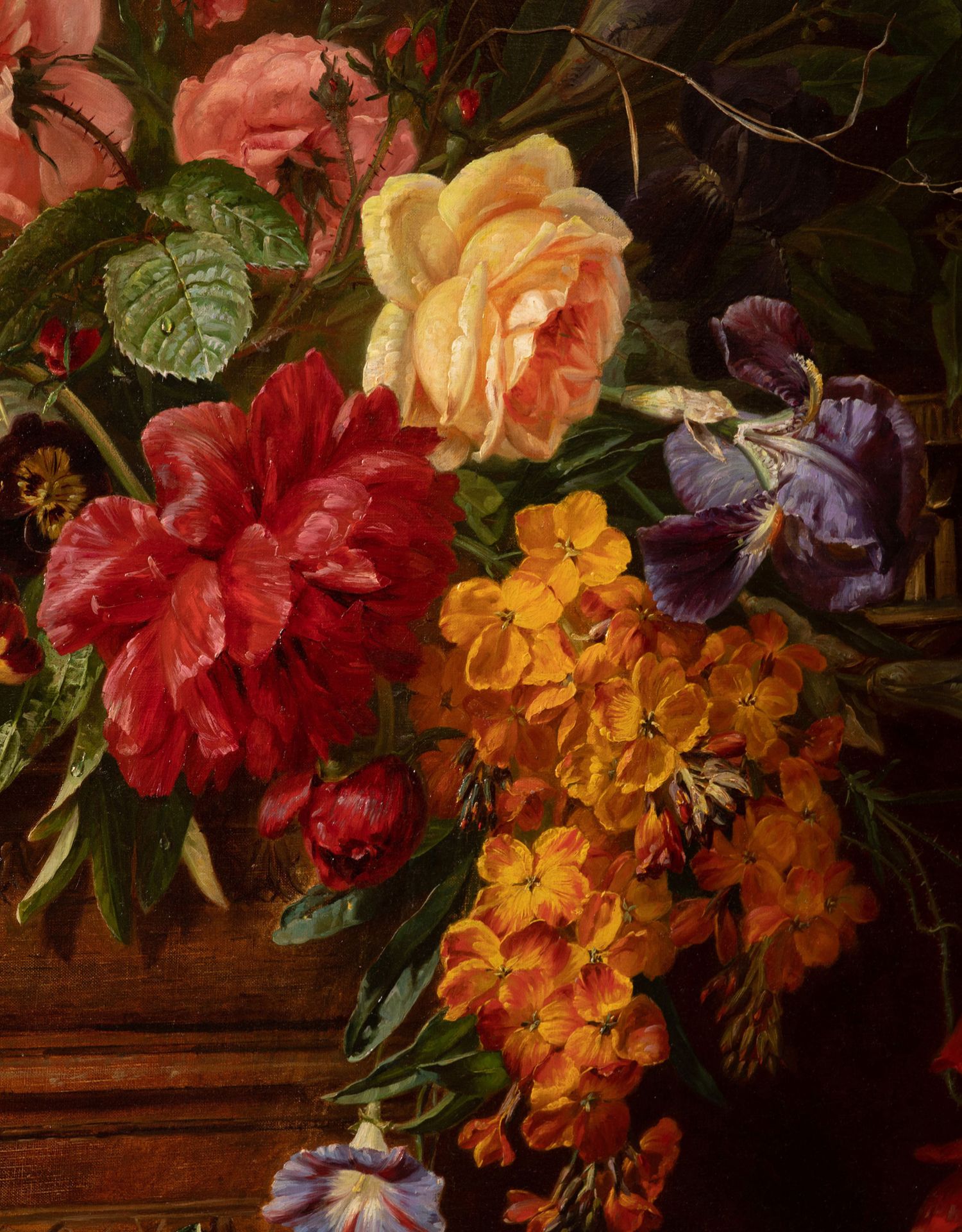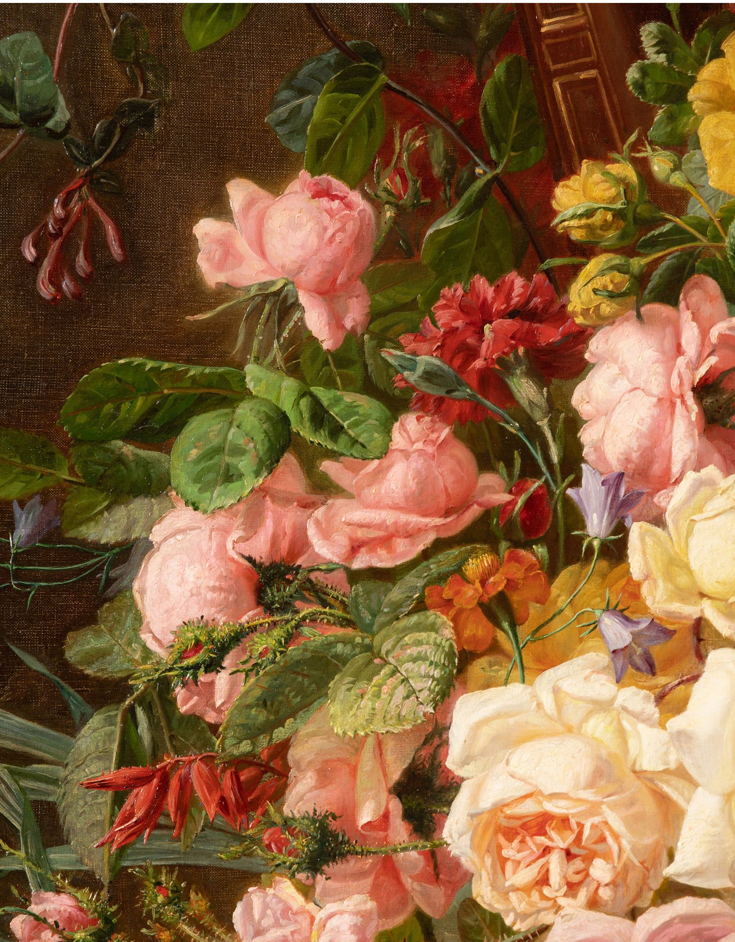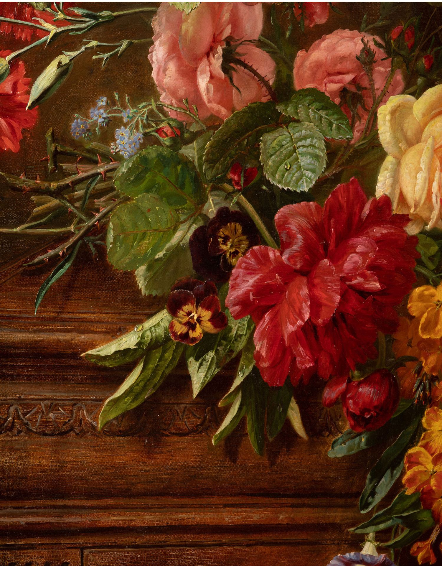 独角鹿西洋古董法国画家Jean-Pierre La?s布面油画鲜花与乐器