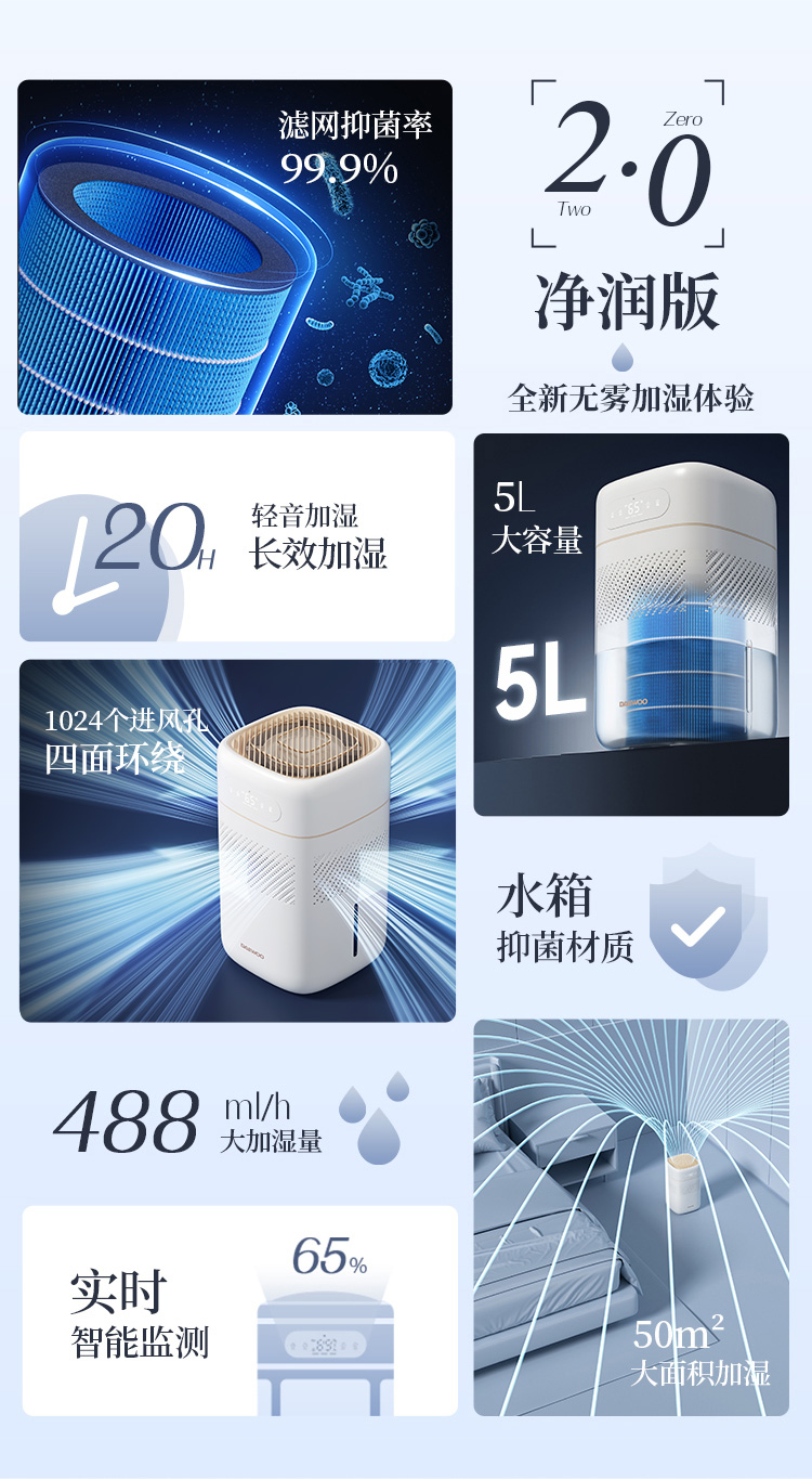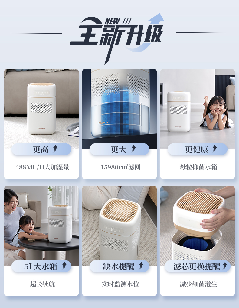 大宇无雾加湿器家用孕妇婴儿卧室静大容量低音空气净化器