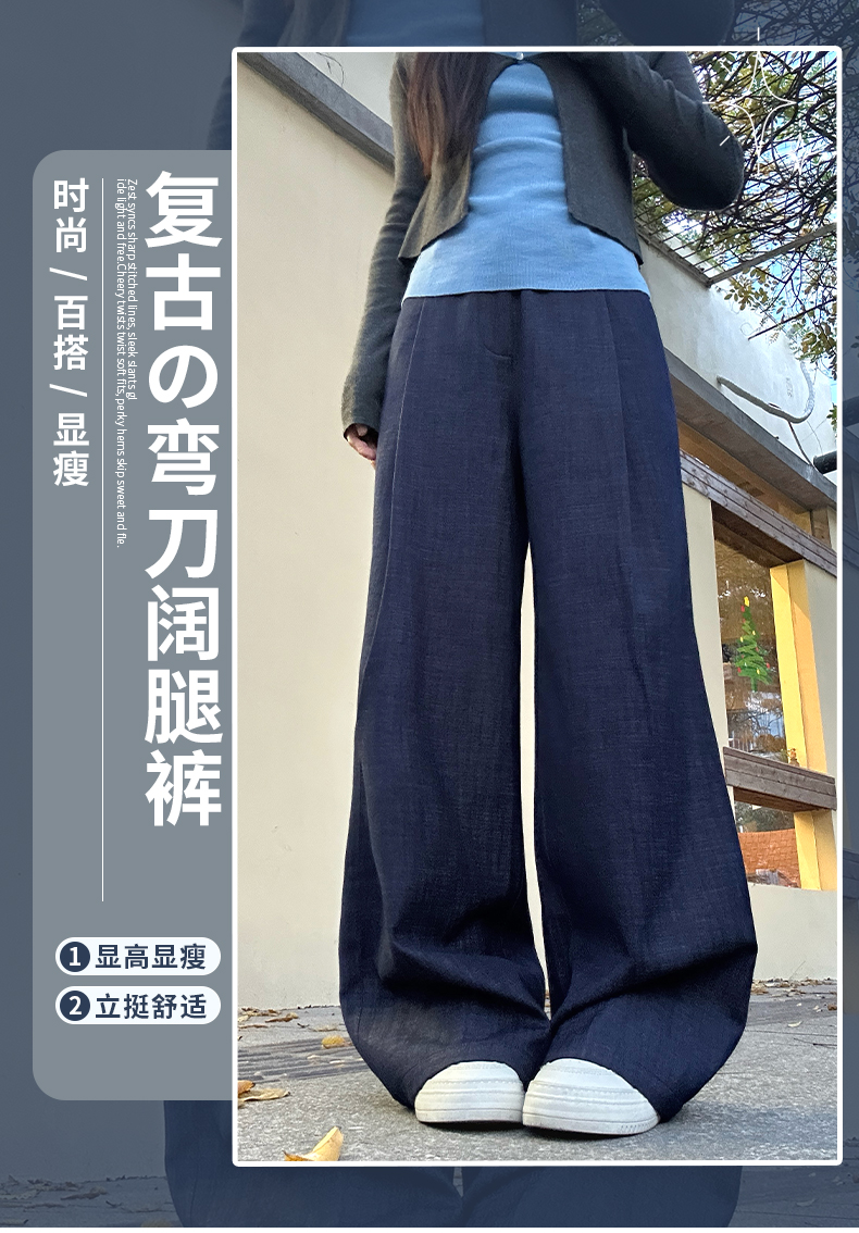 【YW】无忧购春季新款时尚百搭显瘦复古弯刀阔腿裤女Q-A9077(截单后3-5天发货)