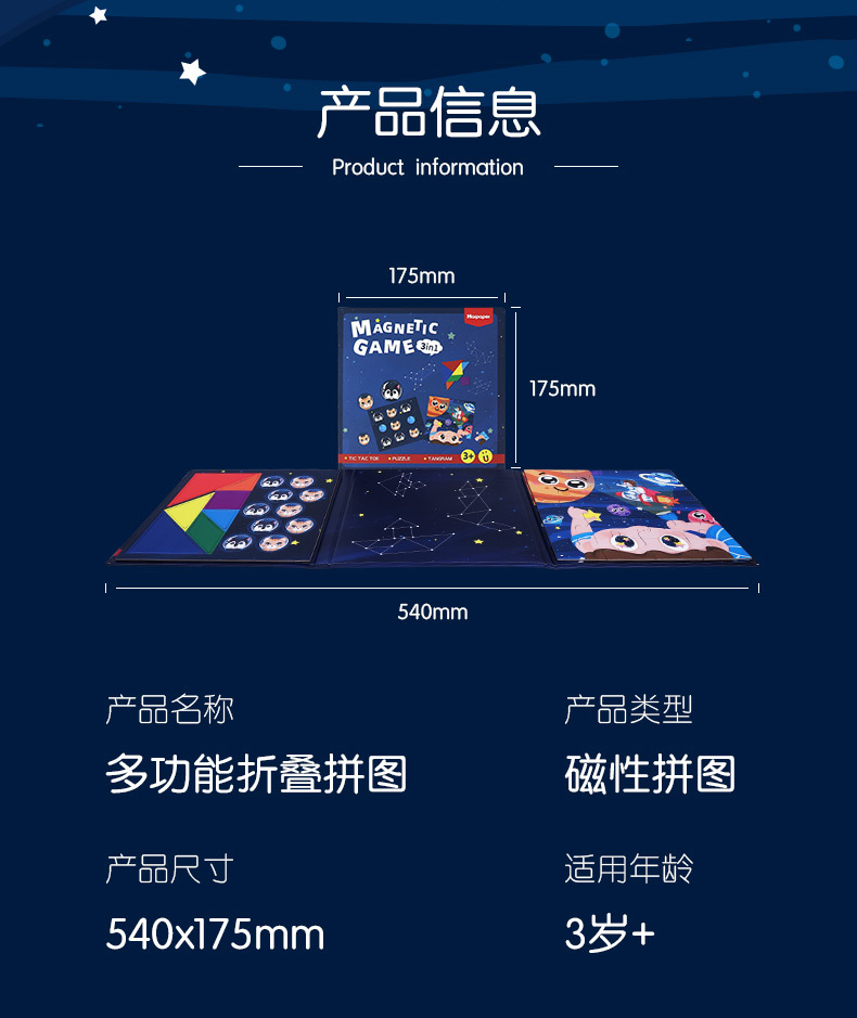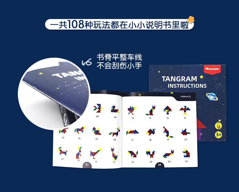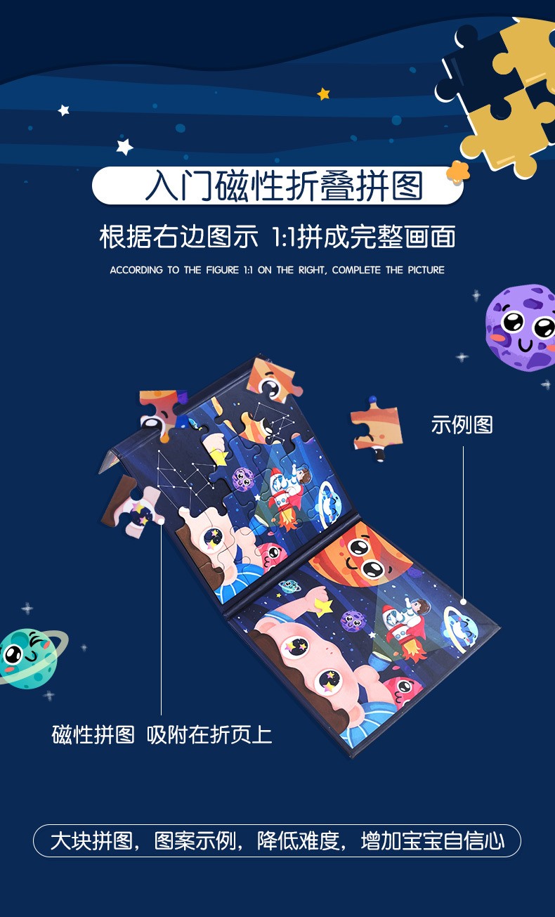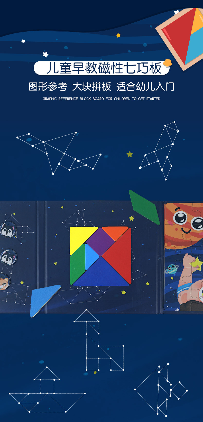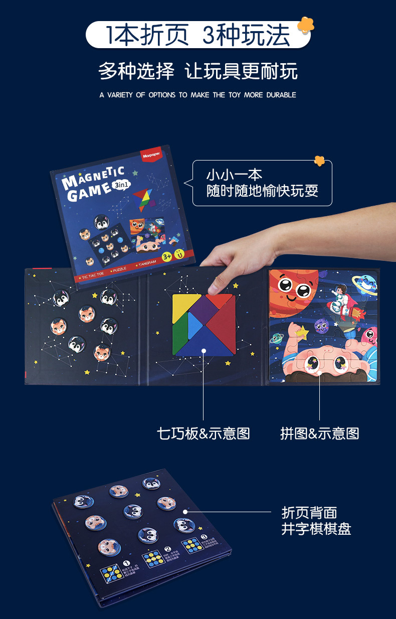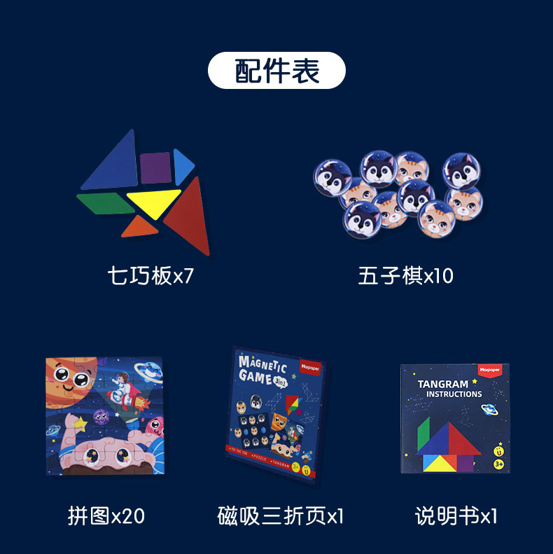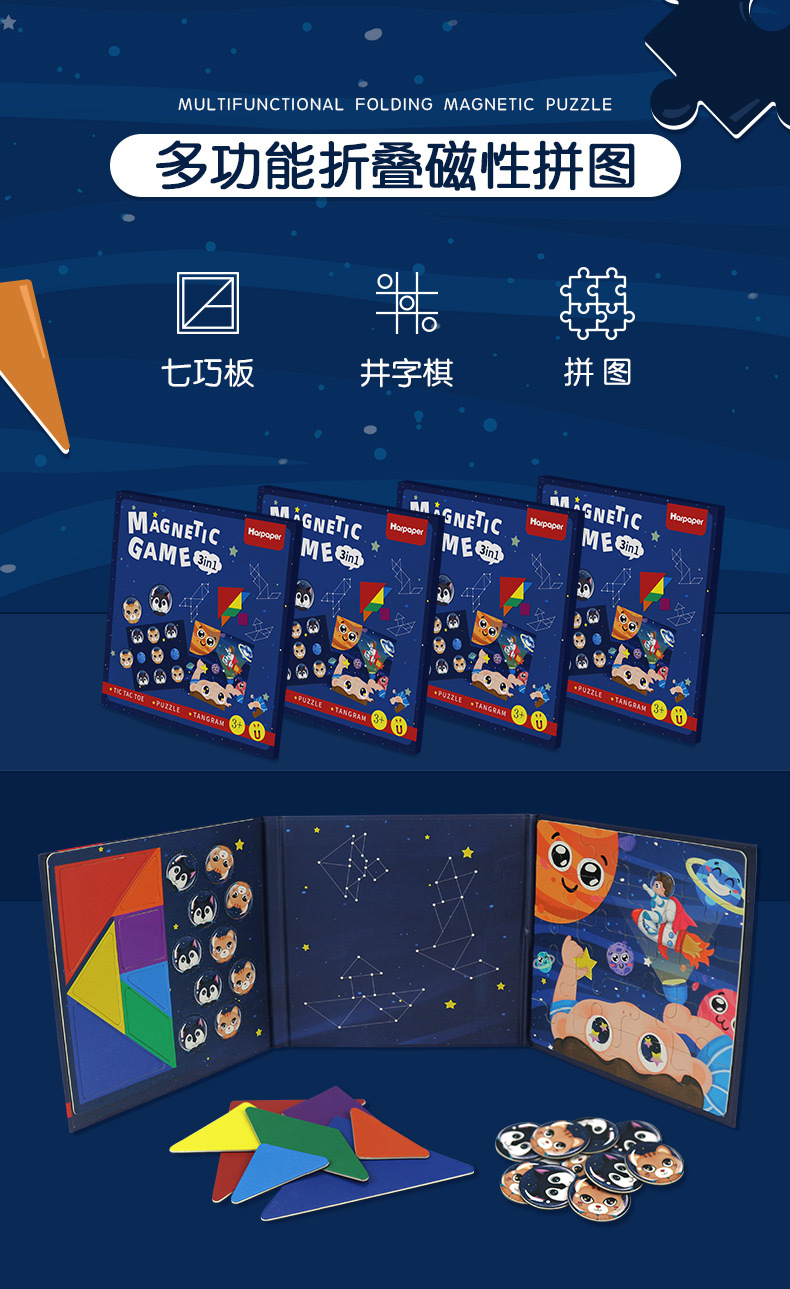 【多功能折叠磁性七巧板拼图】Harpaper磁性3in1 三折页折叠拼图 太空入门级七巧板拼图 儿童益智玩具